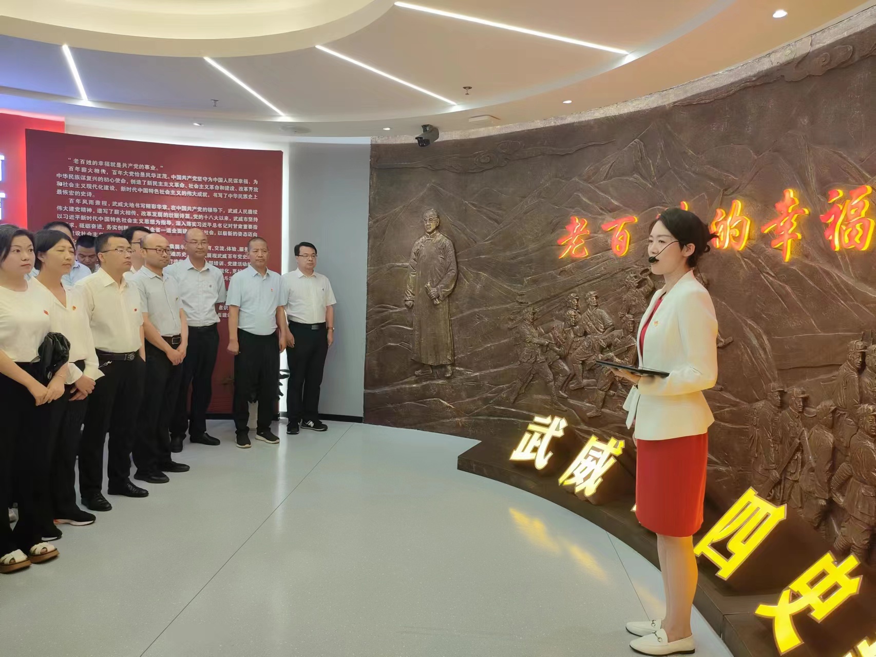 全體黨員懷著崇敬的心情,在講解員的引導(dǎo)下,大家有序參觀了黨性教育基地序廳、主廳、智慧黨建廳、紅色文創(chuàng)廳、尾廳和初心講堂。一件件實(shí)物、一幅幅圖片、一段段故事,把大家?guī)Щ氐侥嵌尾憠验煹膷槑V歲月,共同追憶了武威發(fā)展的光輝歷程和紅色歷史,對(duì)武威發(fā)展的輝煌歷程有了更加深入的了解和認(rèn)識(shí),對(duì)共產(chǎn)黨人的初心和使命有了更深刻的理解和感悟。在初心講堂,黨員們共同觀看紅色專題片《先鋒之光》,重溫中國(guó)共產(chǎn)黨人為了建設(shè)新中國(guó)拋頭顱、灑熱血的崢嶸歲月。