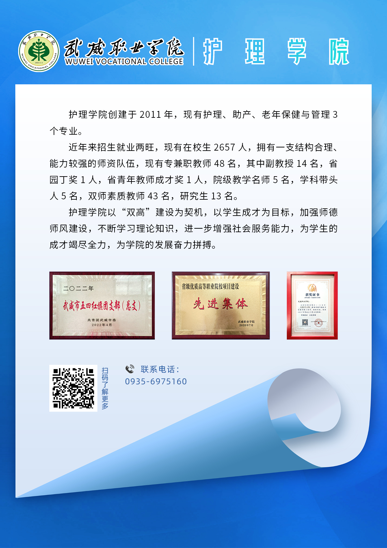 武威職業(yè)學(xué)院二級(jí)學(xué)院專業(yè)簡介丨護(hù)理學(xué)院