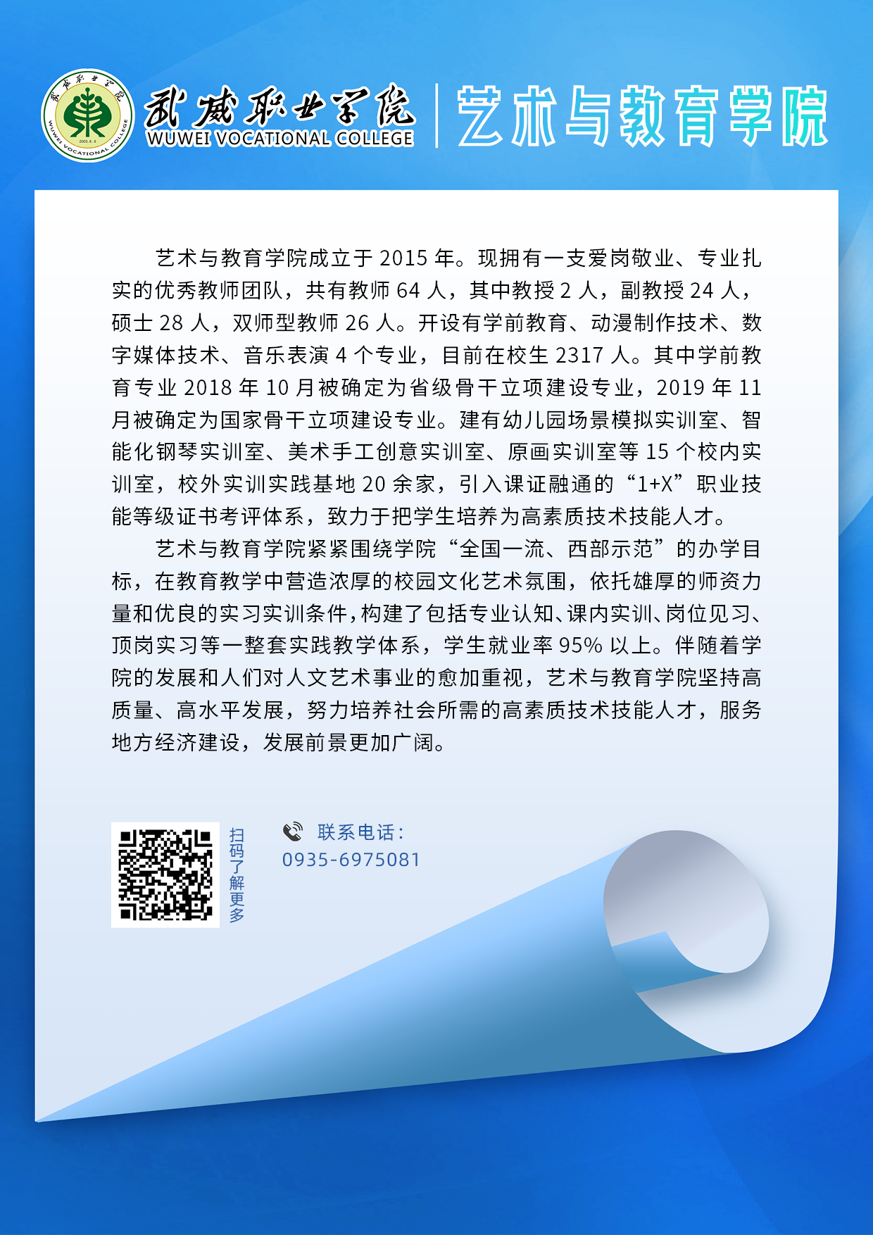 武威職業(yè)學院二級學院專業(yè)簡介丨藝術(shù)與教育學院
