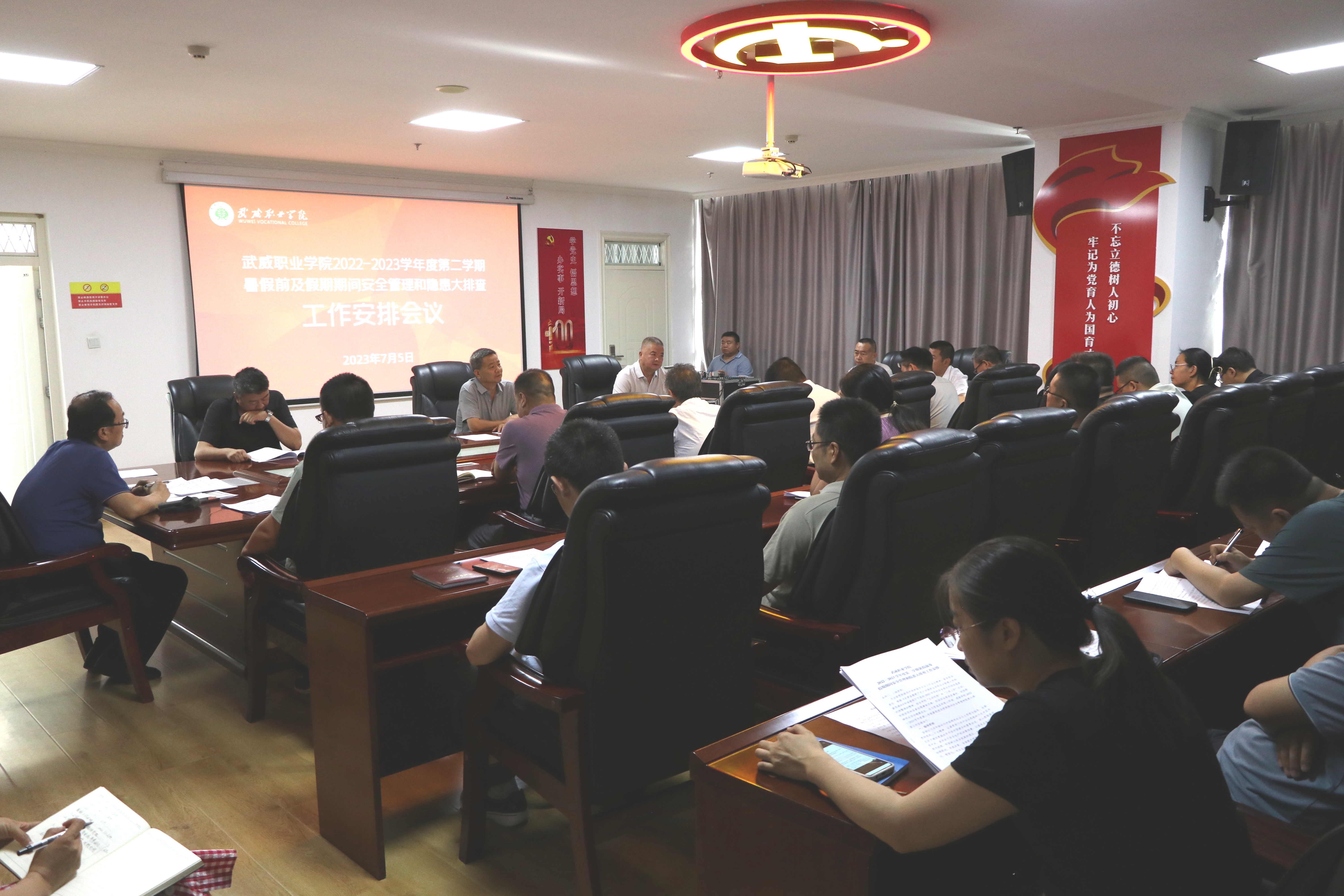 王守云傳達了《甘肅省教育廳關(guān)于加強職業(yè)學校安全管理工作的緊急通知》精神。分析研判了學校當前學生安全教育管理面臨的形勢,并安排部署了武威職業(yè)學院2022至2023學年第二學期暑假前及暑假期間安全管理及安全隱患大排查工作。