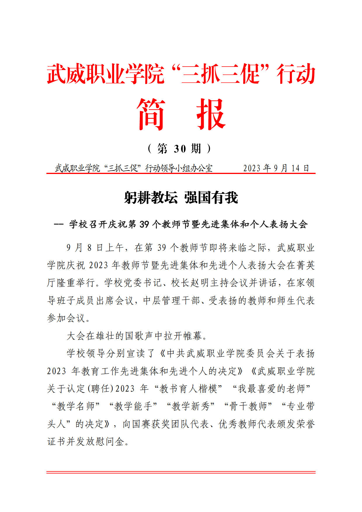 簡報第30期 躬耕教壇 強國有我
