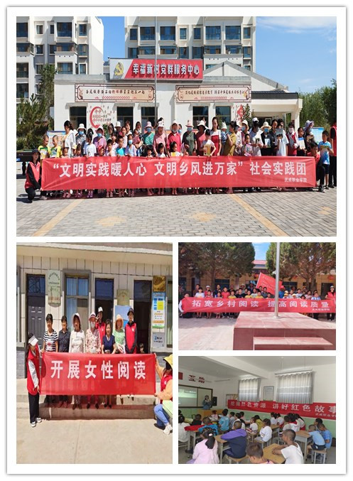 “文明實踐暖人心 文明鄉(xiāng)風進萬家”社會實踐團深入涼州區(qū)高壩鎮(zhèn)、長城鎮(zhèn)、永昌鎮(zhèn)、吳家井鎮(zhèn),古浪縣綠洲小鎮(zhèn),武威市社會福利院等地開展“拓寬鄉(xiāng)村閱讀 提高閱讀質量”“圖書漂流”“開展女性閱讀”四項主題活動,讓廣大農民群眾親身感受文化的魅力,提升農村女性文化素養(yǎng),用紅色事跡啟迪人生,促進農村文化建設、道德建設、倫理建設和文明鄉(xiāng)風建設。