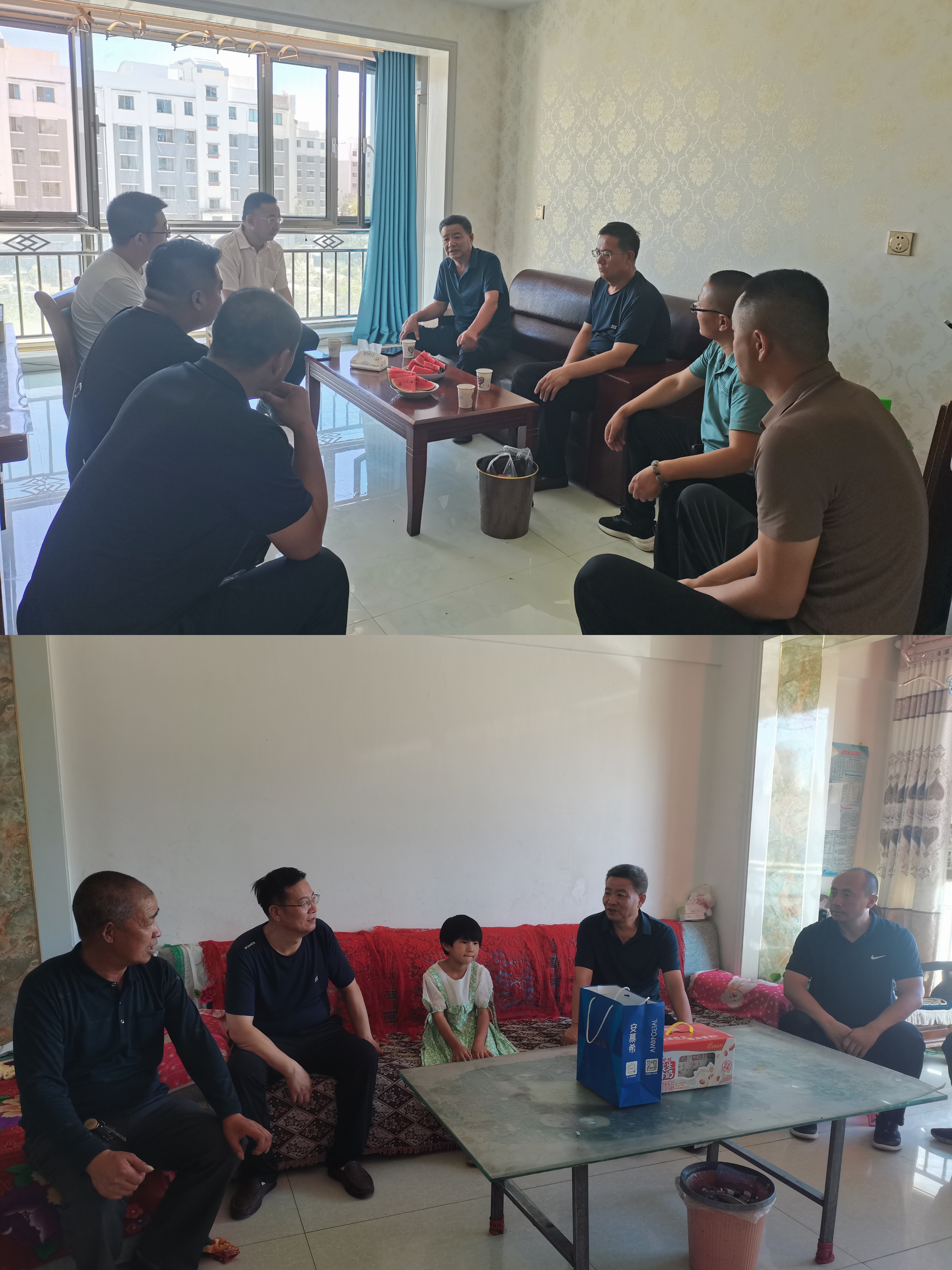 7月29日下午,學(xué)校黨委書記、校長趙明教授,黨委委員、副校長張開禮教授帶領(lǐng)幫扶辦、駐村工作隊(duì)隊(duì)員在橫梁鄉(xiāng)走進(jìn)各自結(jié)對關(guān)愛的困難群眾家中,面對面拉家常,詳細(xì)了解特殊困難群眾個(gè)人健康、經(jīng)濟(jì)收入、生活近況、醫(yī)療保障、孩子教育等方面情況,做到底子清、情況明。手拉手講困難,對簡單訴求當(dāng)場協(xié)調(diào)解決,確保群眾反映的小事、急事第一時(shí)間辦理,對無法當(dāng)場解決的,及時(shí)耐心做好解釋工作,制定切實(shí)可行、行之有效的幫扶計(jì)劃,跟進(jìn)落實(shí)關(guān)愛幫扶措施。關(guān)愛活動(dòng)結(jié)束后,校領(lǐng)導(dǎo)督導(dǎo)了駐村工作隊(duì)近期工作,開展“夏送清涼”慰問活動(dòng)。
