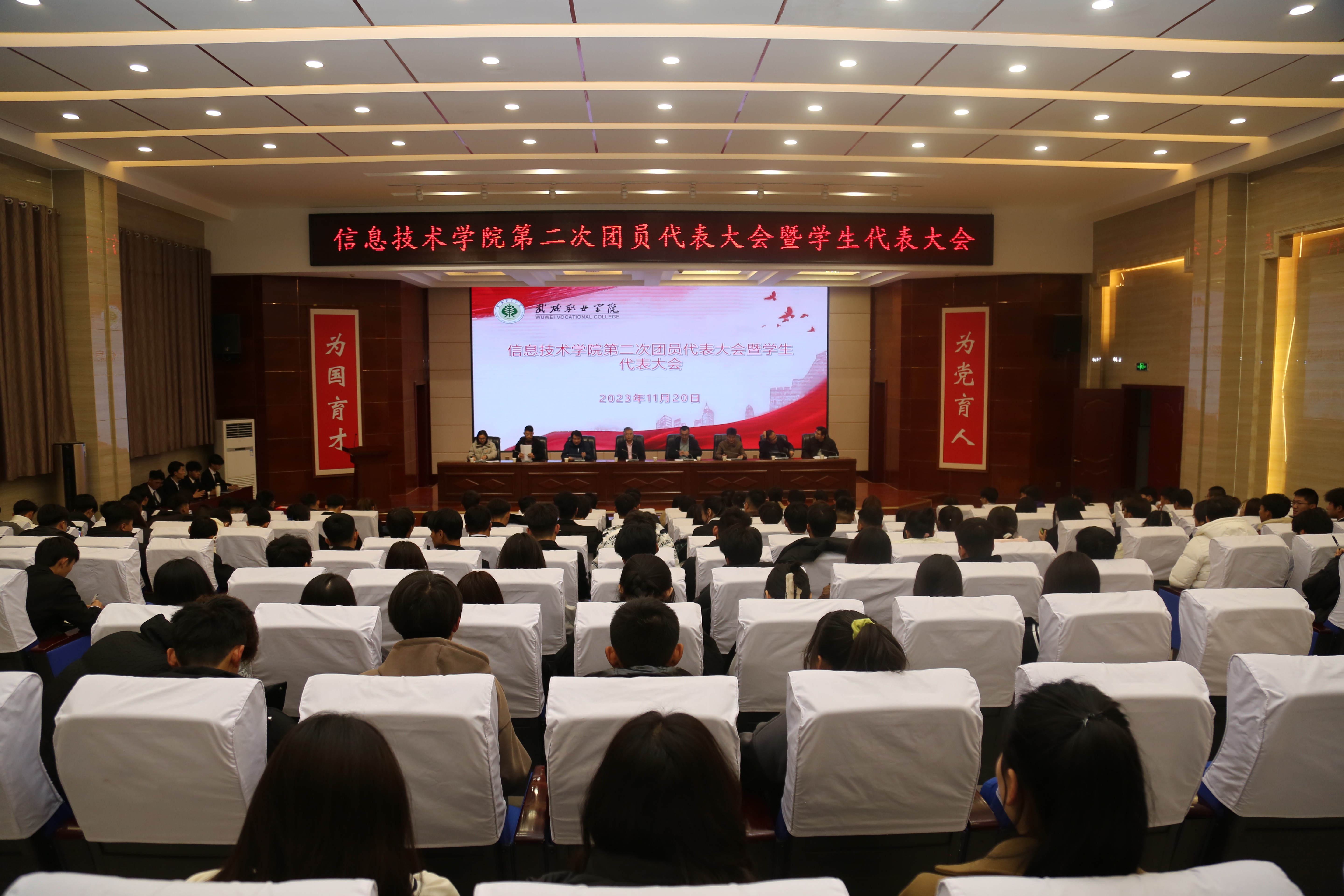 2023年11月20日,信息技術(shù)學(xué)院第二次團(tuán)員代表大會暨學(xué)生代表大會在菁英廳隆重召開。信息技術(shù)學(xué)院黨總支書記潘從明、校團(tuán)委張登海及師生代表共200余人參加會議。