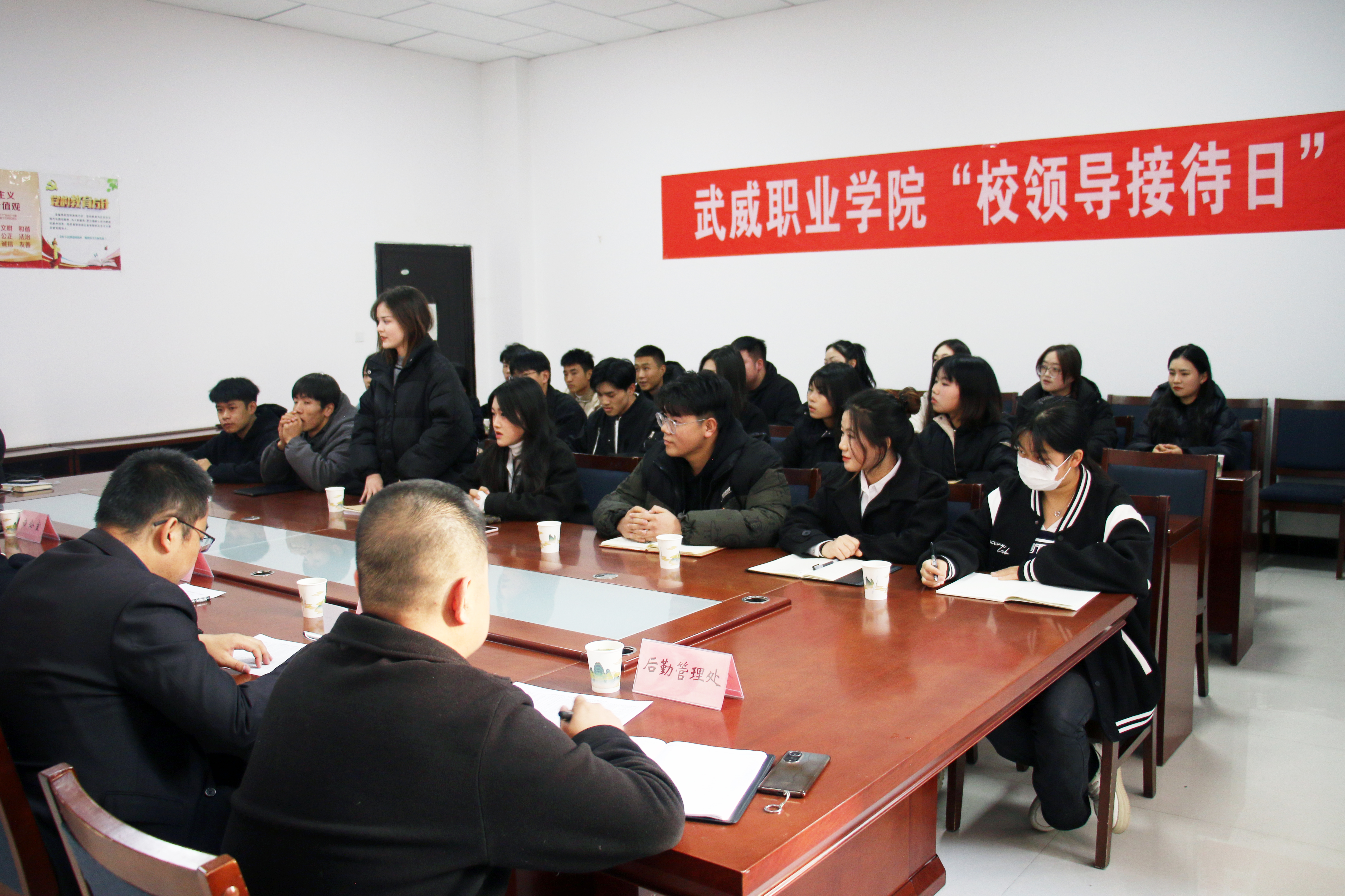 為切實(shí)做好“四下基層”工作,保障學(xué)生權(quán)益,進(jìn)一步營(yíng)造民主和諧的校園氛圍,提高校園服務(wù)質(zhì)量和管理水平,學(xué)校于11月24日下午在學(xué)生發(fā)展中心103會(huì)議室舉辦了2023-2024學(xué)年第一期“校領(lǐng)導(dǎo)接待日”活動(dòng)。校長(zhǎng)、黨委副書記張開禮與來(lái)自各二級(jí)學(xué)院的22名學(xué)生代表進(jìn)行了親切交流,辦公室、教務(wù)處、學(xué)生工作處、后勤管理處等相關(guān)部門負(fù)責(zé)人參加了活動(dòng)。