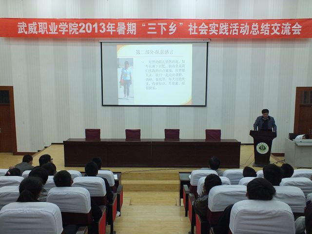 10月14日下午,武威職業(yè)學(xué)院2013年暑期“三下鄉(xiāng)”社會實踐活動總結(jié)交流會在東階梯教室舉行,學(xué)院團委負責人及各實踐團隊成員和新生團學(xué)干部代表共300人參加了交流會。
