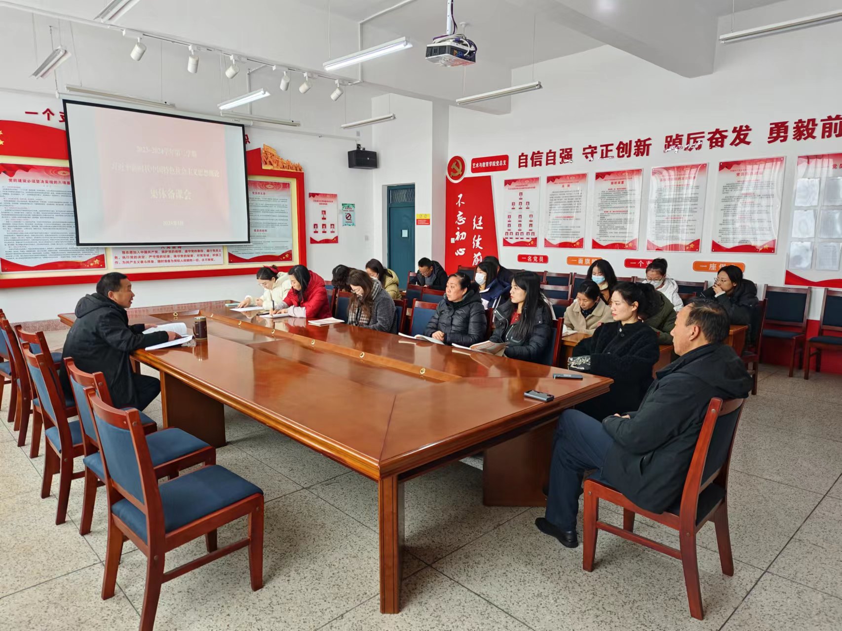 為全面、準(zhǔn)確把握《習(xí)近平新時代中國特色社會主義思想概論》教材的重點和難點,堅持用黨的創(chuàng)新理論鑄魂育人,推動思政課教學(xué)提質(zhì)增效,3月4日,馬克思主義學(xué)院召開《習(xí)近平新時代中國特色社會主義思想概論》課程集體備課會。會議由習(xí)近平新時代中國特色社會主義思想概論教研室主任魏玲主持,全體教師參加會議。