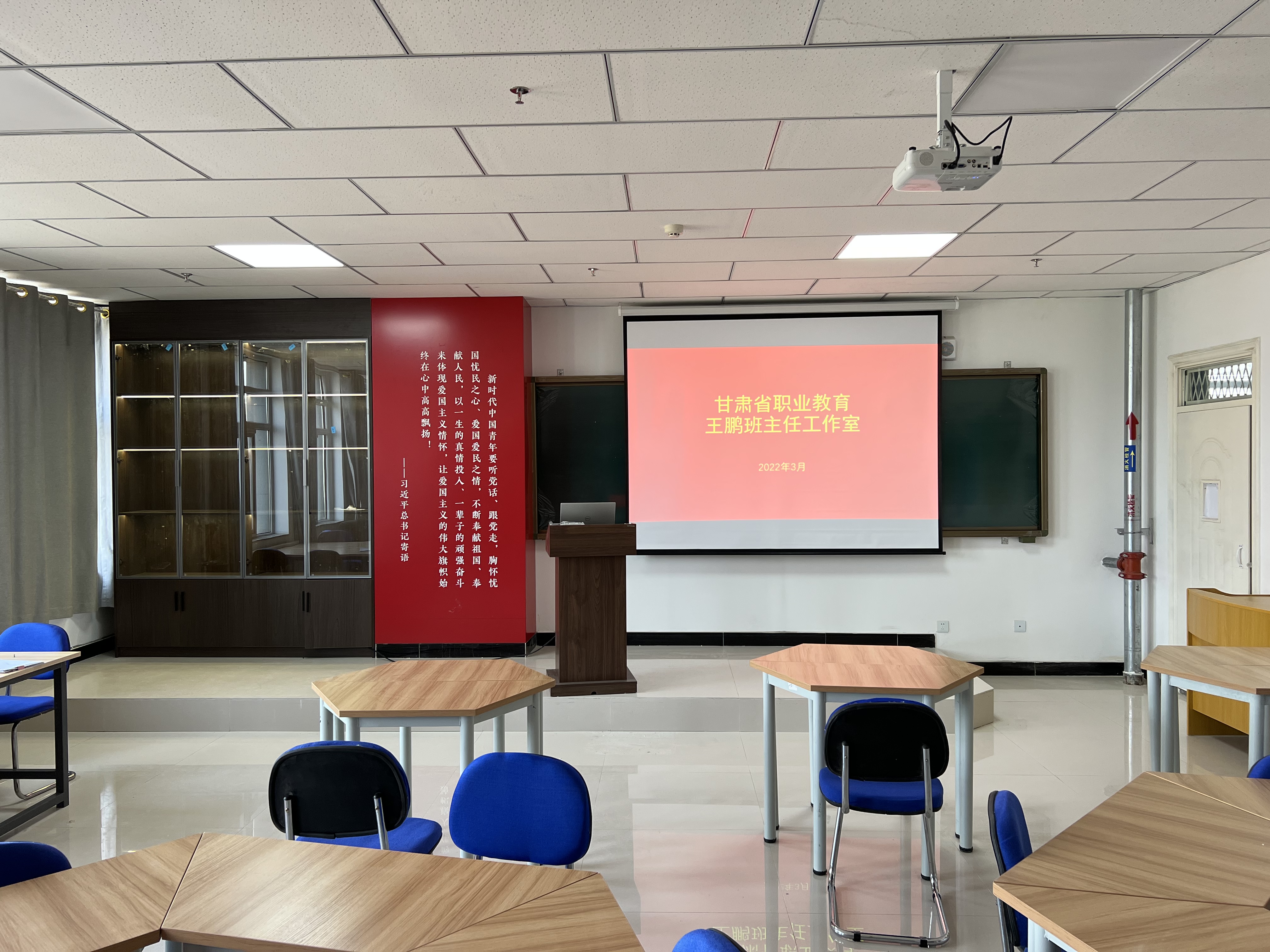 甘肅省職業(yè)教育王鵬班主任工作室于2021年7月由甘肅省教育廳批準成立,建設周期四年,特聘顧問2名,骨干成員8名,試點班級2個。工作室位于能源科技樓二樓,建設面積50平方米,設置業(yè)務培訓、主題沙龍、檔案資料、日常辦公四個區(qū)域,截至目前累計投入建設經(jīng)費2.88萬元。工作室自成立以來,堅持“楷模引領、名師指導、全面協(xié)調(diào)、骨干建設”的工作思路,以思想政治教育、班主任業(yè)務能力提升、大學生骨干班培訓、社會實踐鍛煉、學生職業(yè)生涯規(guī)劃、參軍入伍、心理健康教育、職業(yè)素養(yǎng)提升等方面開展研究實踐,有序推進工作室各項建設工作。