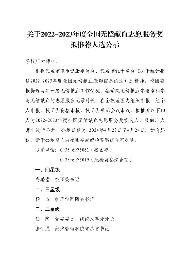 關(guān)于2022-2023年度全國無償獻(xiàn)血志愿服務(wù)獎(jiǎng)擬推薦人選公示