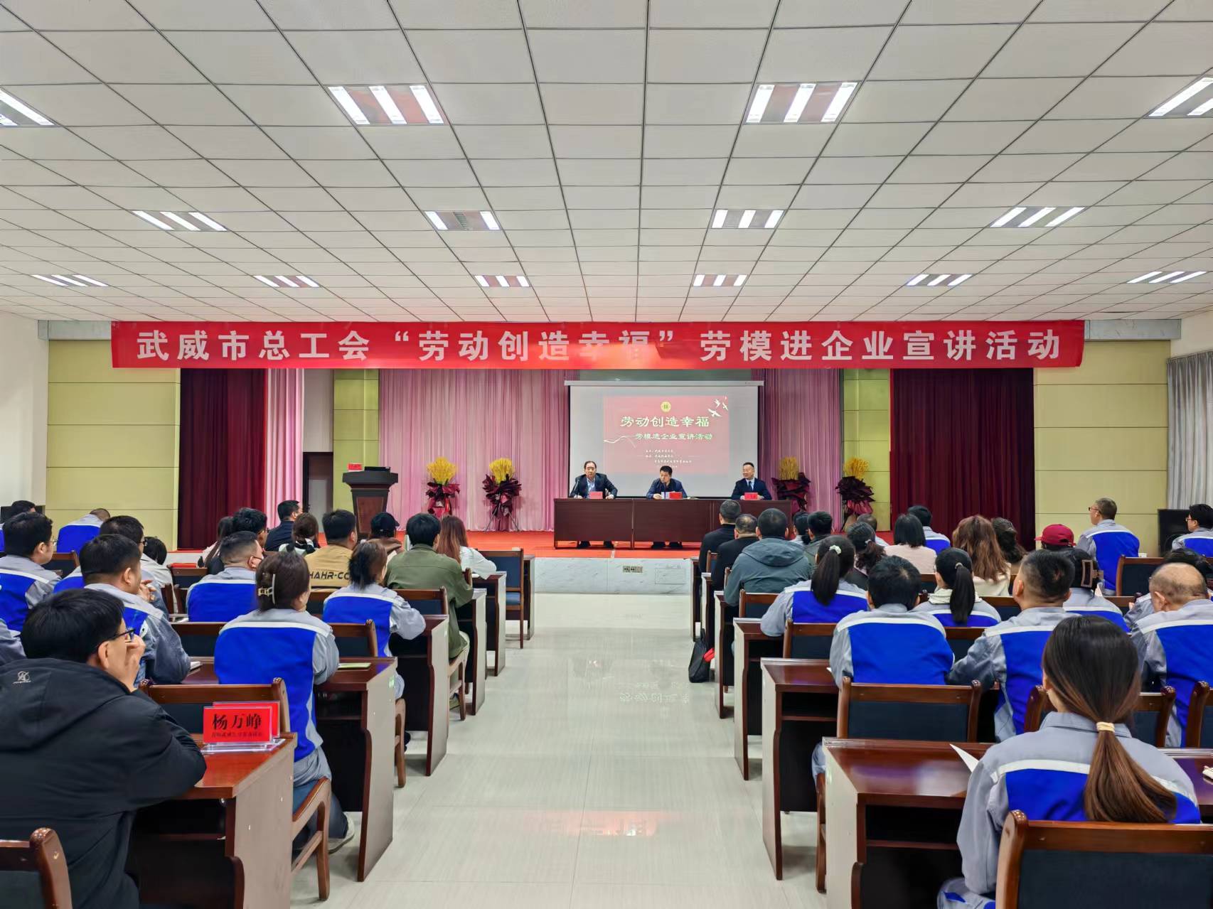 為弘揚(yáng)新時代的勞模精神、勞動精神、工匠精神,進(jìn)一步營造勞動最光榮、勞動最崇高、勞動最偉大、勞動最美麗的濃厚氛圍,4月30日,市總工會、學(xué)校聯(lián)合開展的“勞動創(chuàng)造幸?!眲谀_M(jìn)企業(yè)宣講活動走進(jìn)青島啤酒武威有限責(zé)任公司,青島啤酒武威有限責(zé)任公司職工代表、學(xué)校勞模工匠技術(shù)服務(wù)團(tuán)隊(duì)120多人參加活動。