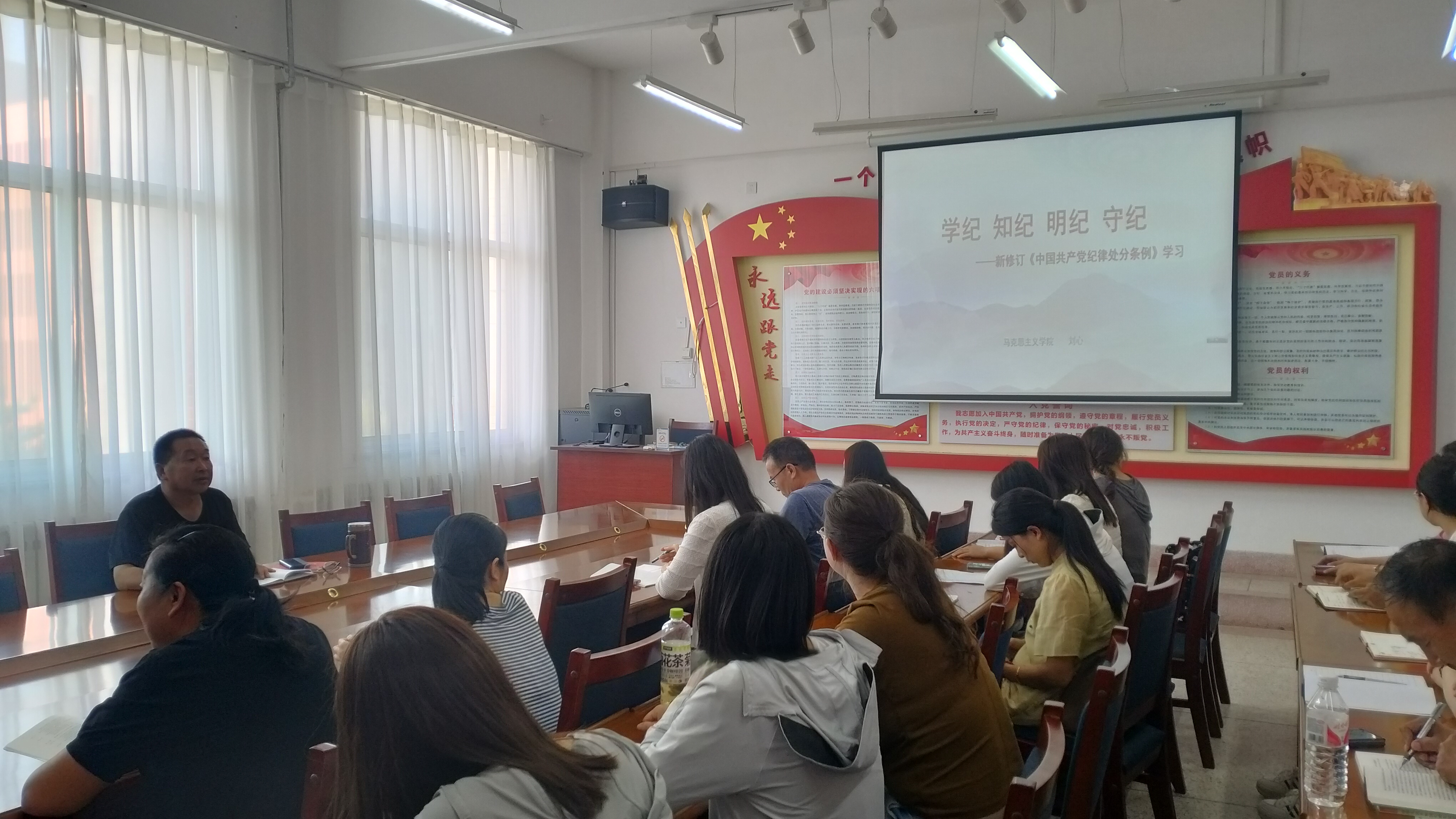 為扎實推進黨紀學習教育,進一步嚴明政治紀律和政治規(guī)矩,引導黨員教師真正做到學紀、知紀、明紀、守紀。5月21日,馬克思主義學院黨支部書記劉心作了黨紀學習教育專題輔導,全體黨員參加。