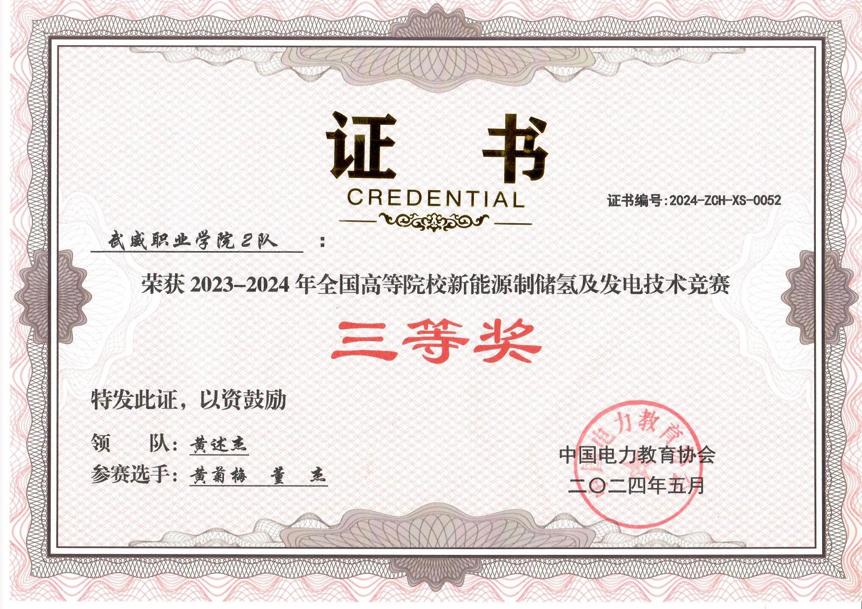近日,在重慶電力高等??茖W(xué)校舉行的全國首屆高等學(xué)校新能源制儲氫及發(fā)電技術(shù)競賽中,中科低碳新能源技術(shù)學(xué)院教師王續(xù)峰和學(xué)生王智組成的參賽1隊(duì)榮獲全國二等獎,教師黃菊梅和學(xué)生董杰組成參賽2隊(duì)榮獲全國三等獎。?