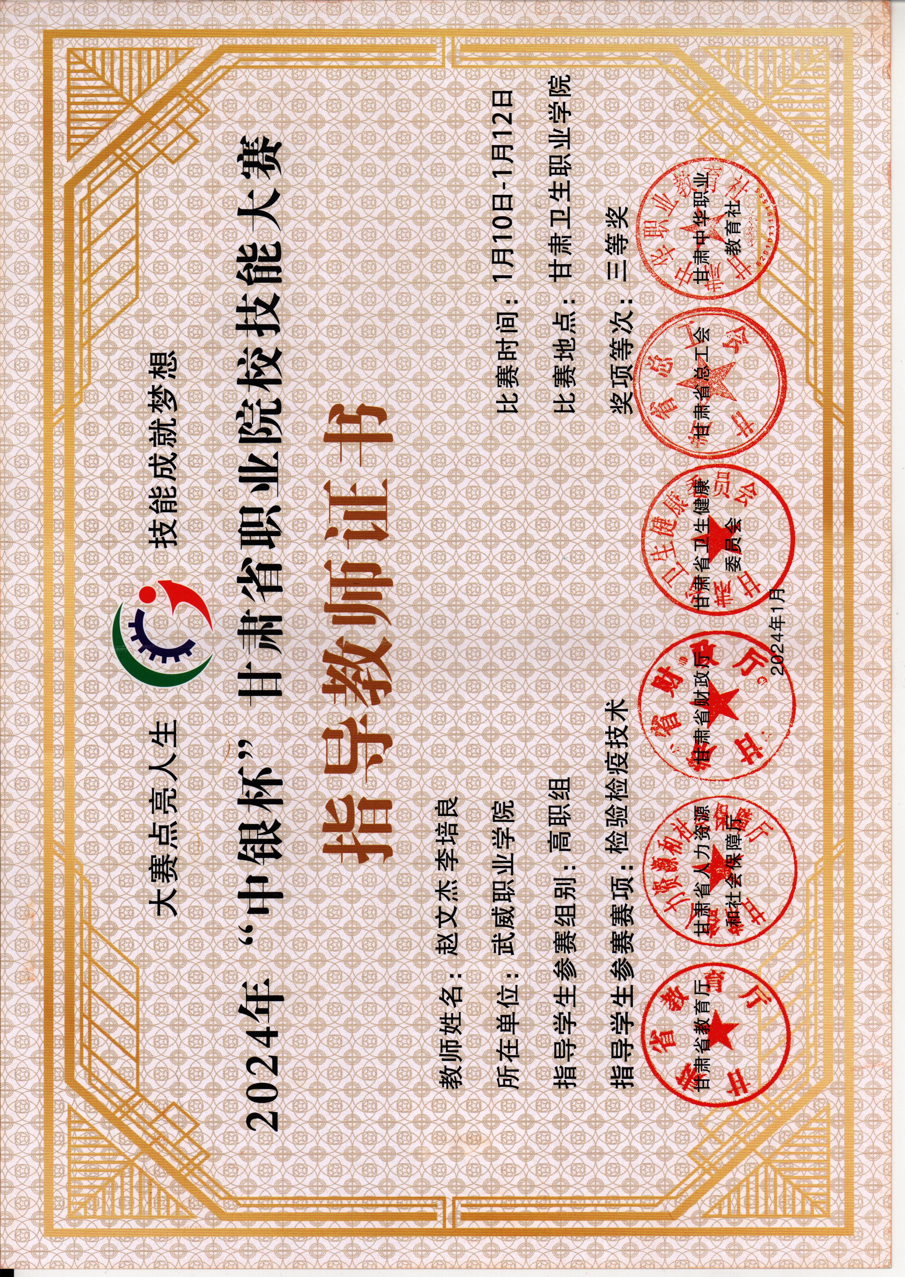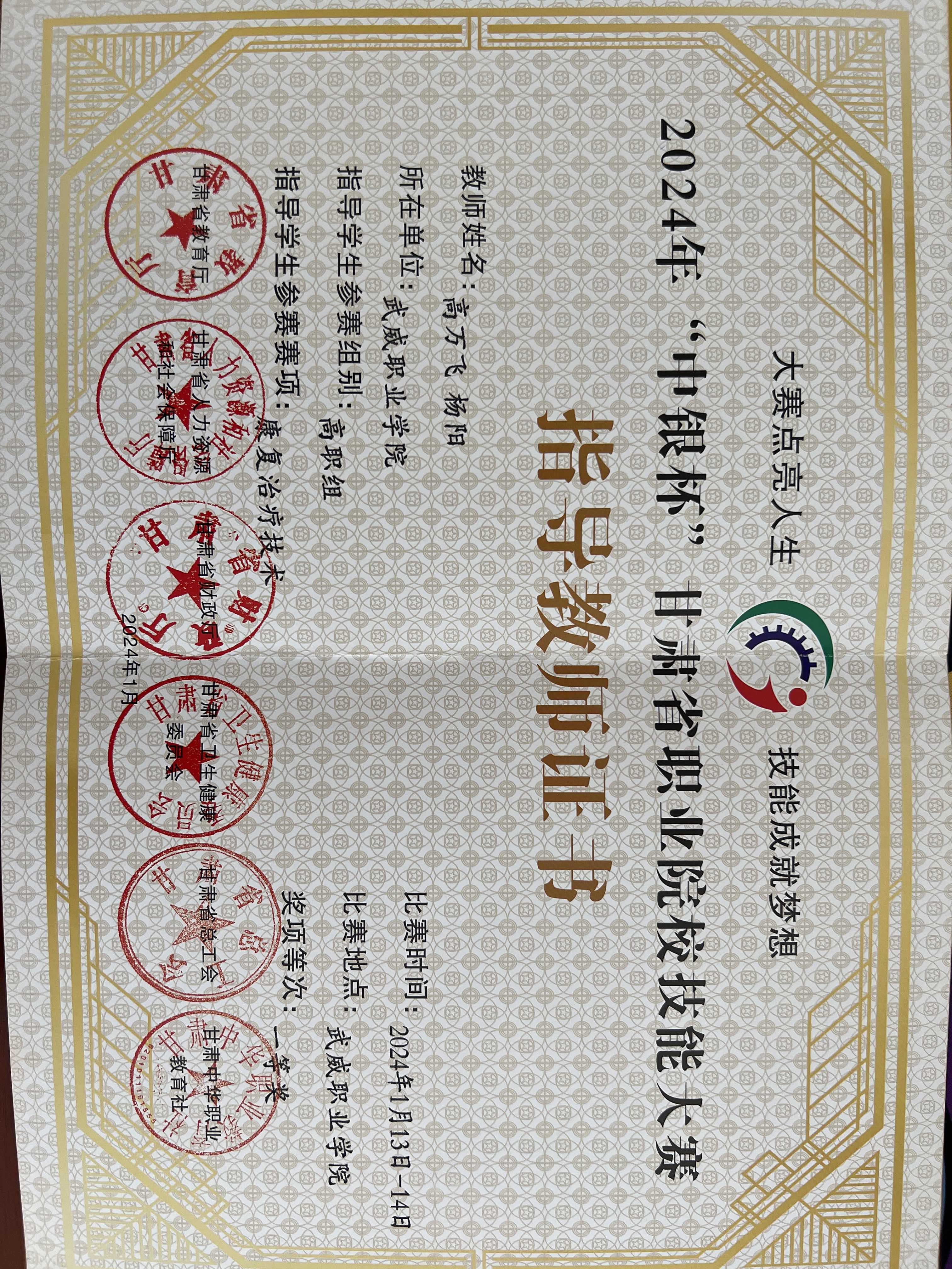 在2024年“中銀杯”甘肅省職業(yè)院校技能大賽中我院多組學(xué)生、指導(dǎo)教師獲得高職組團(tuán)體一等獎(jiǎng)等多項(xiàng)獎(jiǎng)項(xiàng)。