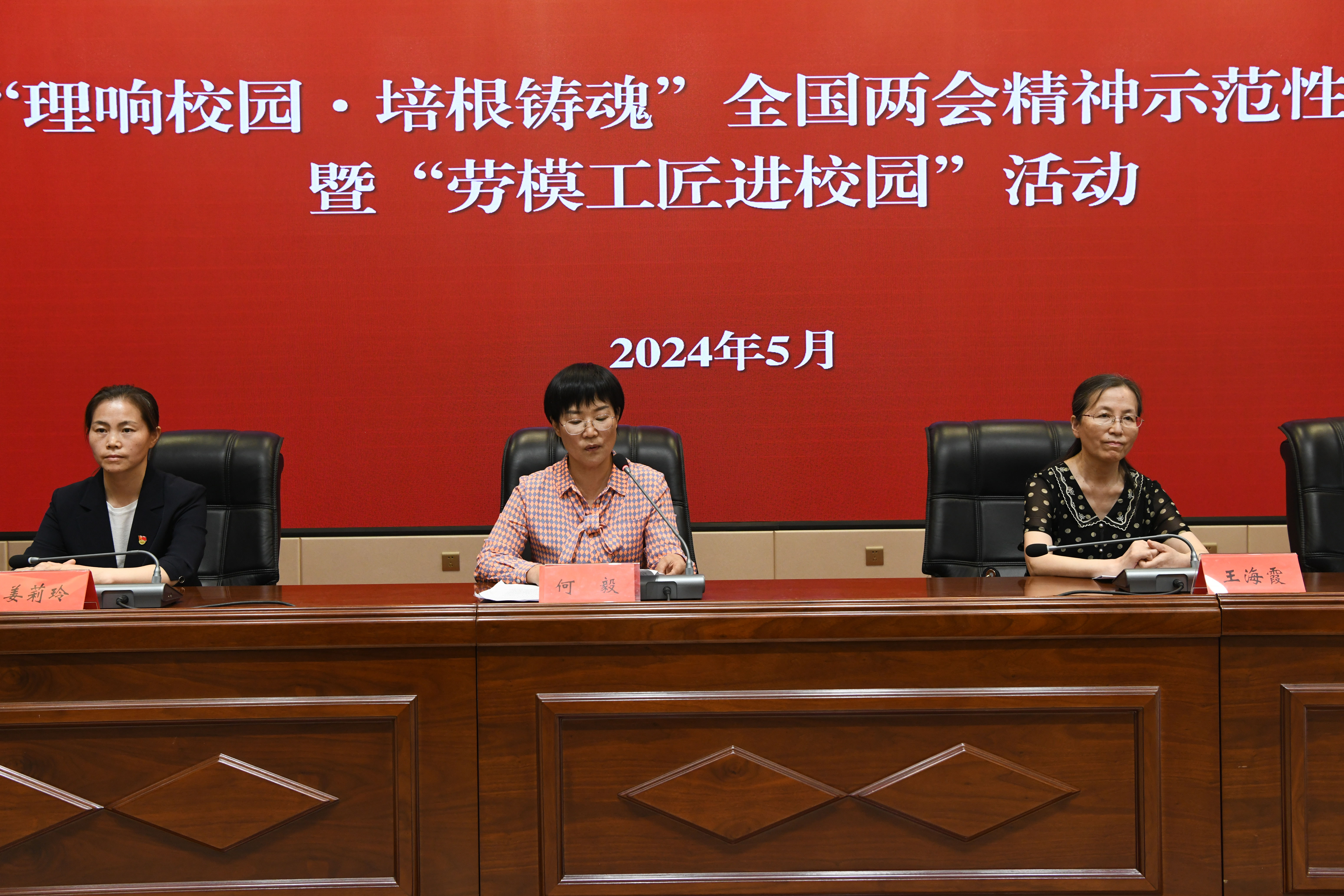 為全面深入學(xué)習(xí)領(lǐng)會習(xí)近平總書記在全國兩會期間發(fā)表的一系列重要講話精神以及全國兩會審議通過的報告和文件精神,根據(jù)省委教育工委、省總工會有關(guān)要求,5月20日上午,甘肅省“理響校園·培根鑄魂”全國兩會精神示范性宣講暨“勞模工匠進校園”活動武威職業(yè)學(xué)院專場,在學(xué)校學(xué)生發(fā)展中心菁英廳舉行。學(xué)校邀請?zhí)m州理工大學(xué)馬克思主義學(xué)院教授王海霞,武威民勤退耕還林辦公室主任、甘肅省五一巾幗獎?wù)芦@得者姜莉玲,蘭州理工大學(xué)經(jīng)管學(xué)院學(xué)生白玲玲來學(xué)校宣講。學(xué)校黨委委員、副校長何毅,宣傳統(tǒng)戰(zhàn)部負責(zé)人、師生代表共200余人參加宣講會。宣講會由何毅主持。