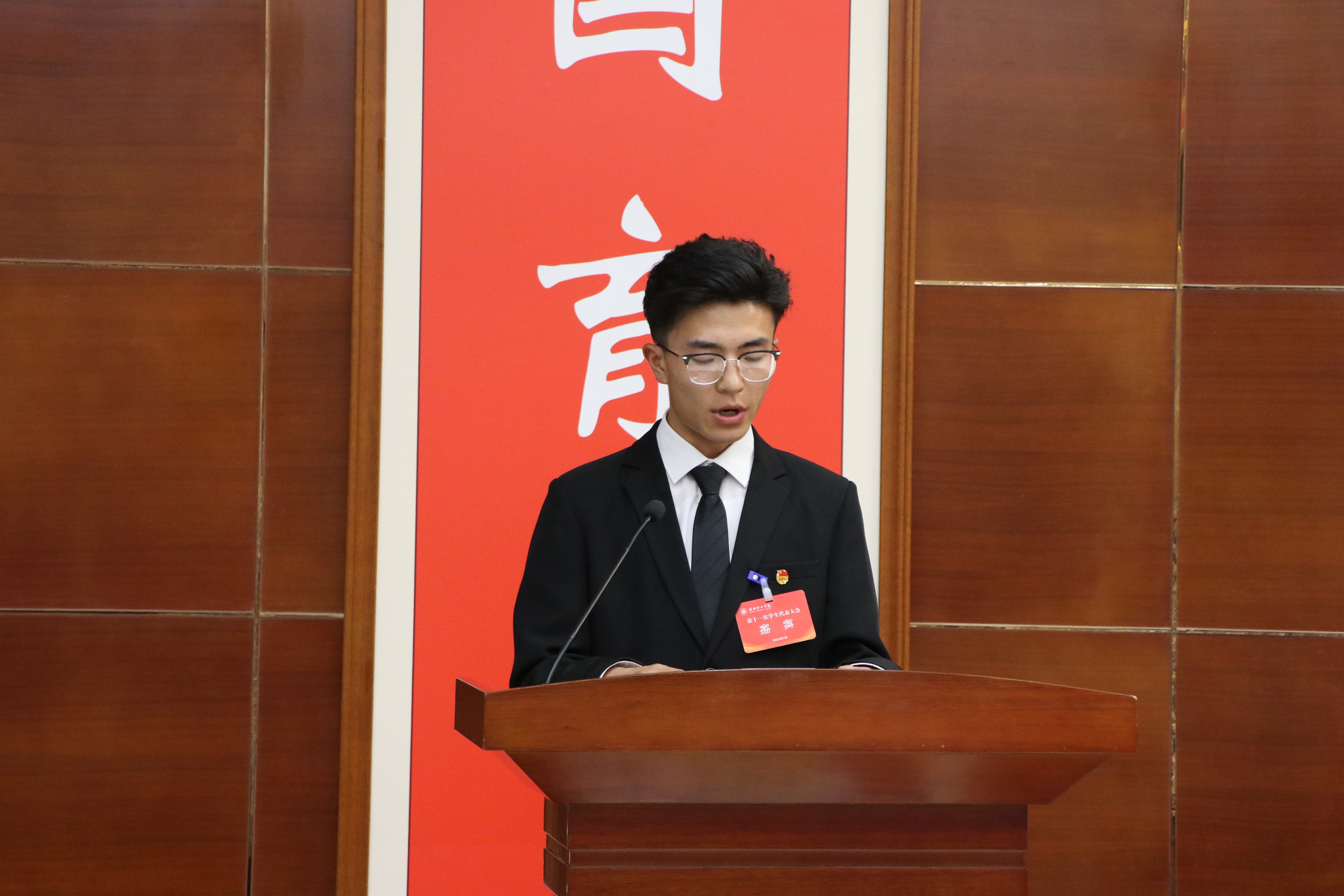 學(xué)校學(xué)生會(huì)主席團(tuán)成員虎梁才同學(xué)代表第十屆學(xué)生會(huì)委員會(huì)向大會(huì)作題為《激揚(yáng)青春奏華章,挺膺時(shí)代勇?lián)?dāng),團(tuán)結(jié)帶領(lǐng)廣大同學(xué)在矢志奮斗中書寫時(shí)代華章》的工作報(bào)告。