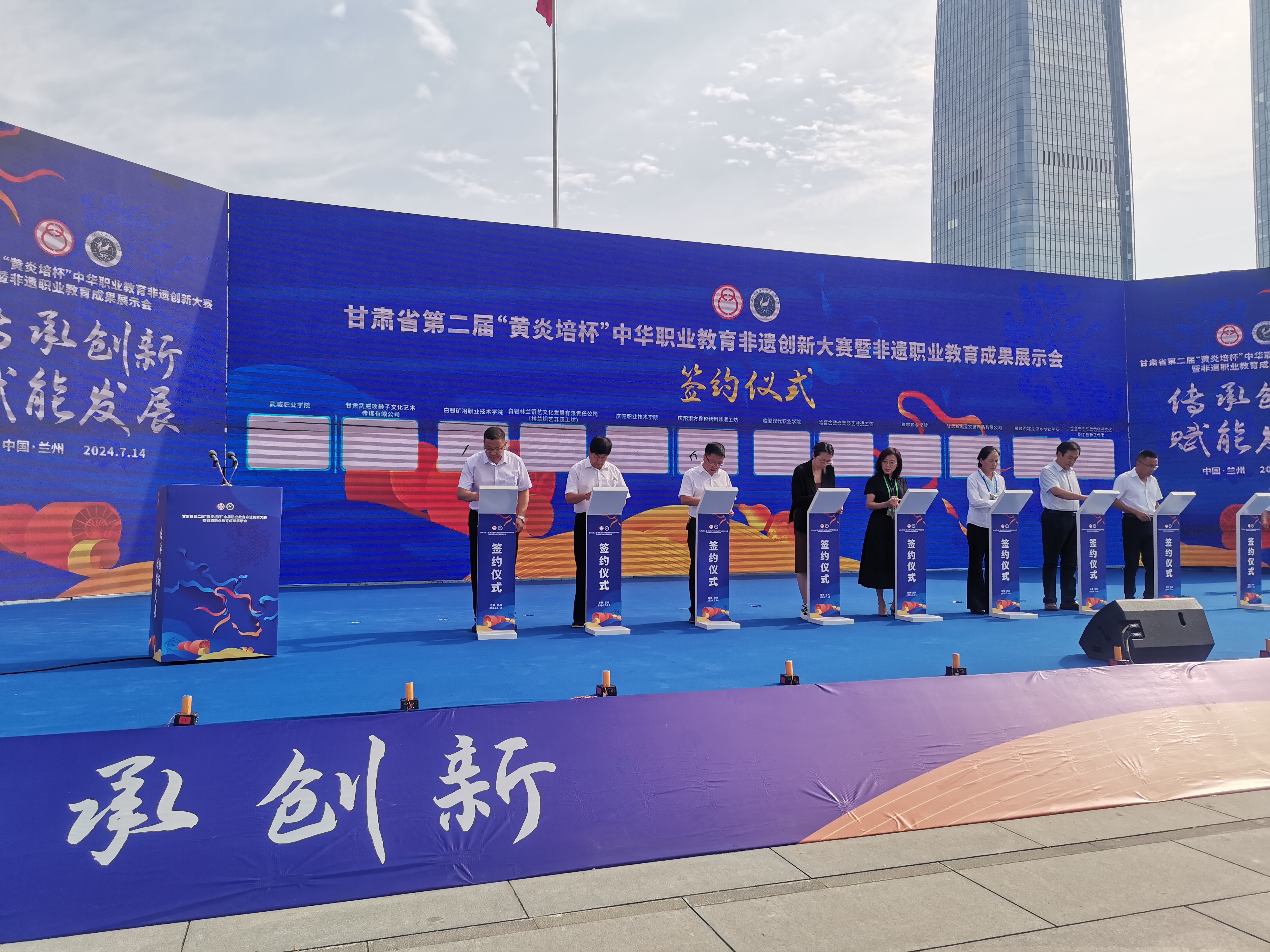 賽會期間還舉行了非遺進職校簽約儀式,學校黨委委員、紀委書記、監(jiān)察專員陳曉煜代表學校與甘肅武威攻鼓子文化藝術傳媒有限公司簽訂了合作協(xié)議。