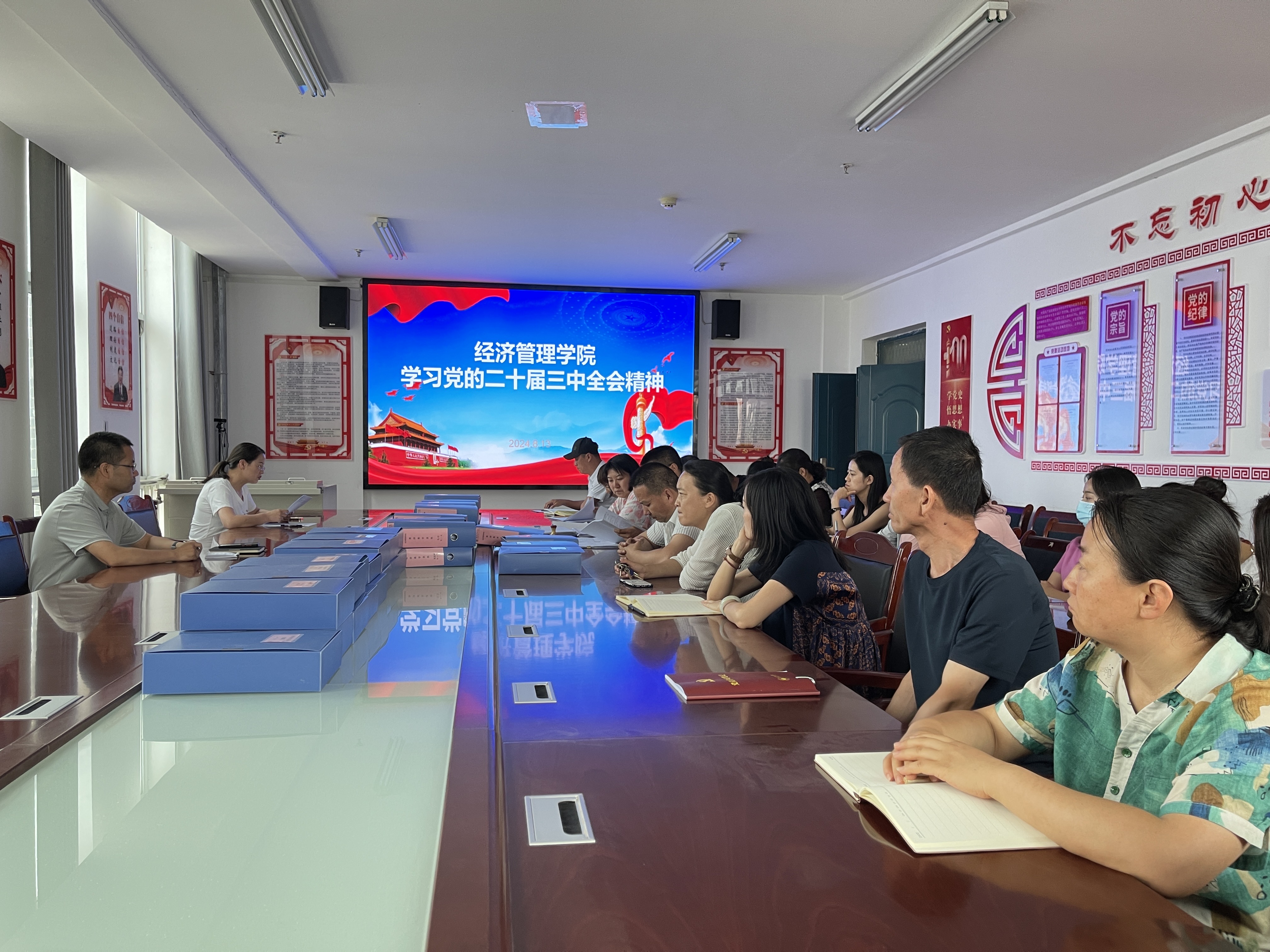 8月13日,經(jīng)濟(jì)管理學(xué)院召開黨的二十屆三中全會(huì)精神專題學(xué)習(xí)會(huì)議,傳達(dá)學(xué)習(xí)《習(xí)近平總書記關(guān)于<中共中央關(guān)于進(jìn)一步全面深化改革、推進(jìn)中國(guó)式現(xiàn)代化的決定>的說明》《中國(guó)共產(chǎn)黨第二十屆中央委員會(huì)第三次全體會(huì)議公報(bào)》《中共中央關(guān)于進(jìn)一步全面深化改革推進(jìn)中國(guó)式現(xiàn)代化的決定》等內(nèi)容。會(huì)議由學(xué)院黨總支書記、院長(zhǎng)張伯成主持,全體教職工參加會(huì)議。