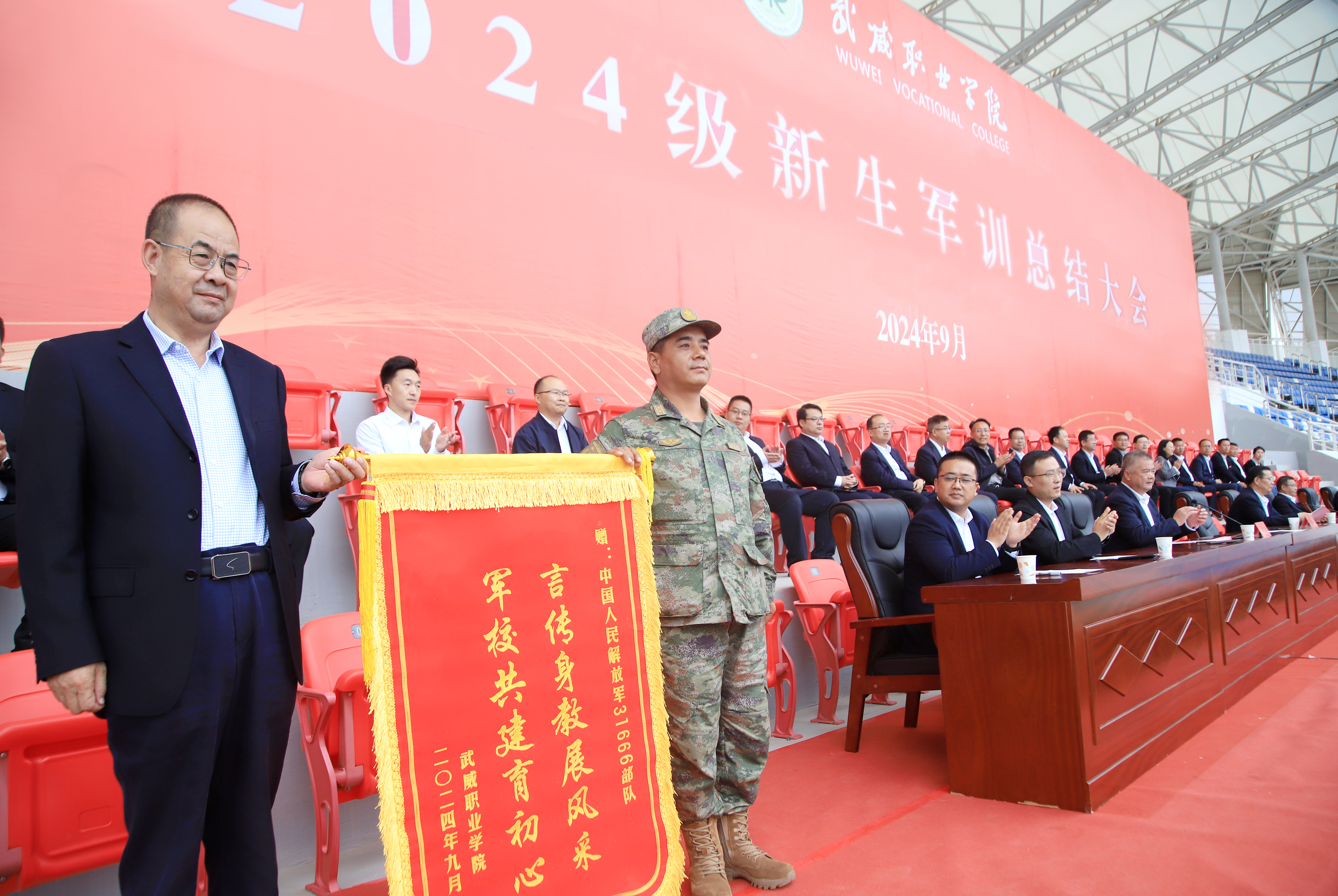 會上,翟存祥代表學(xué)校向承訓(xùn)部隊(duì)贈送錦旗致以崇高的敬意,向奮戰(zhàn)在訓(xùn)練一線的軍訓(xùn)教官及工作人員表示衷心的感謝!陳曉煜宣讀了2024級新生軍訓(xùn)工作先進(jìn)集體、先進(jìn)個人、優(yōu)秀教官和軍訓(xùn)標(biāo)兵擬表彰名單。與會領(lǐng)導(dǎo)為軍訓(xùn)先進(jìn)集體和個人頒發(fā)了獎牌和榮譽(yù)證書。