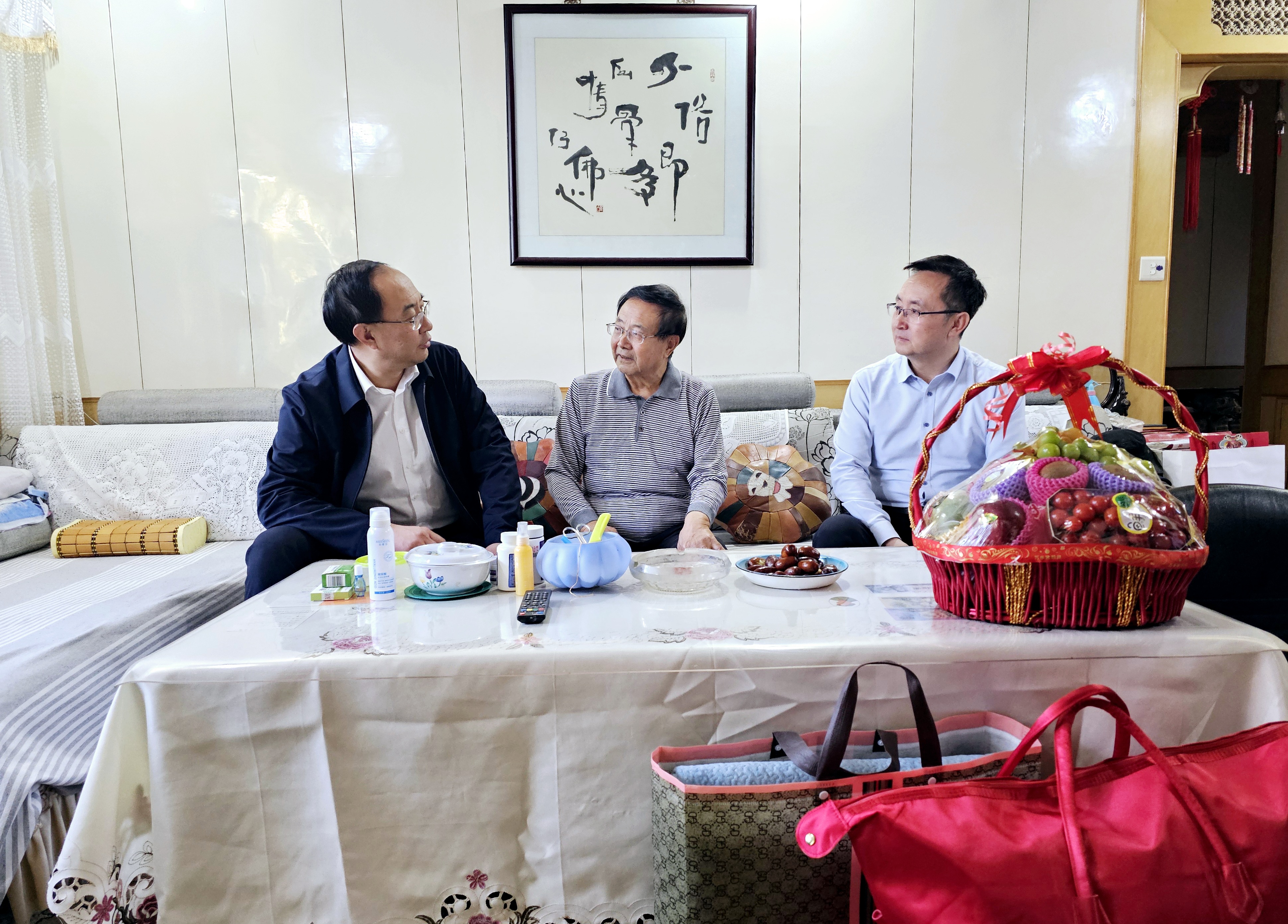 在原黨委書記顏宗明家中,黨委書記王宏關(guān)切詢問其身體狀況和生活情況,共話近年來學校發(fā)展變化,暢談美好發(fā)展愿景,鼓勵他繼續(xù)發(fā)揮余熱,為學校發(fā)展建言獻策。