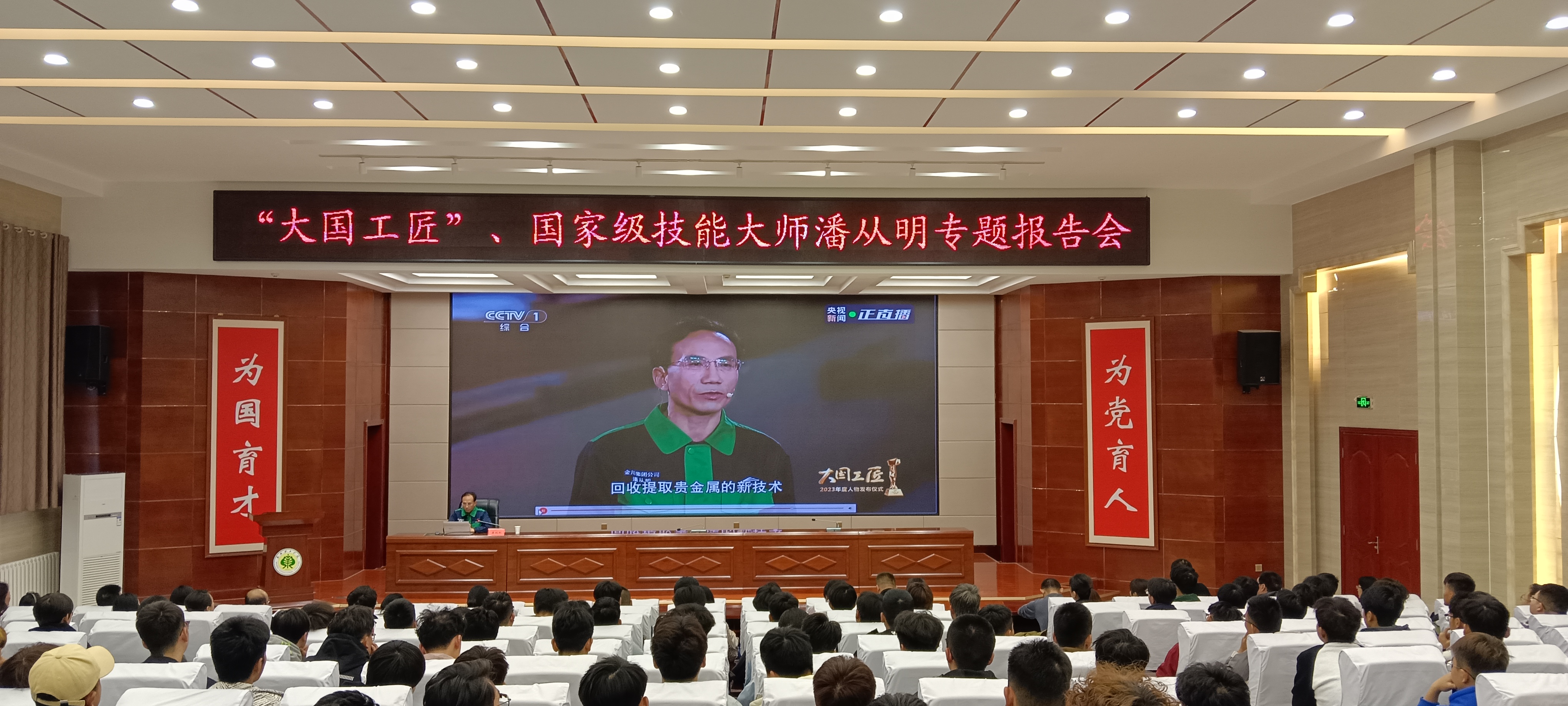 潘從明以“弘揚(yáng)工匠、勞模精神 勇?lián)聲r(shí)代使命”為題,從創(chuàng)新的使命與初心、創(chuàng)新的方法、新員工塑培等方面結(jié)合自身工作經(jīng)歷,分享了從金川公司技校畢業(yè)后,通過(guò)自己的不懈努力,完成了從一名學(xué)徒到普通工人、高級(jí)技師到國(guó)家級(jí)技能大師,再到大國(guó)工匠的跨越。