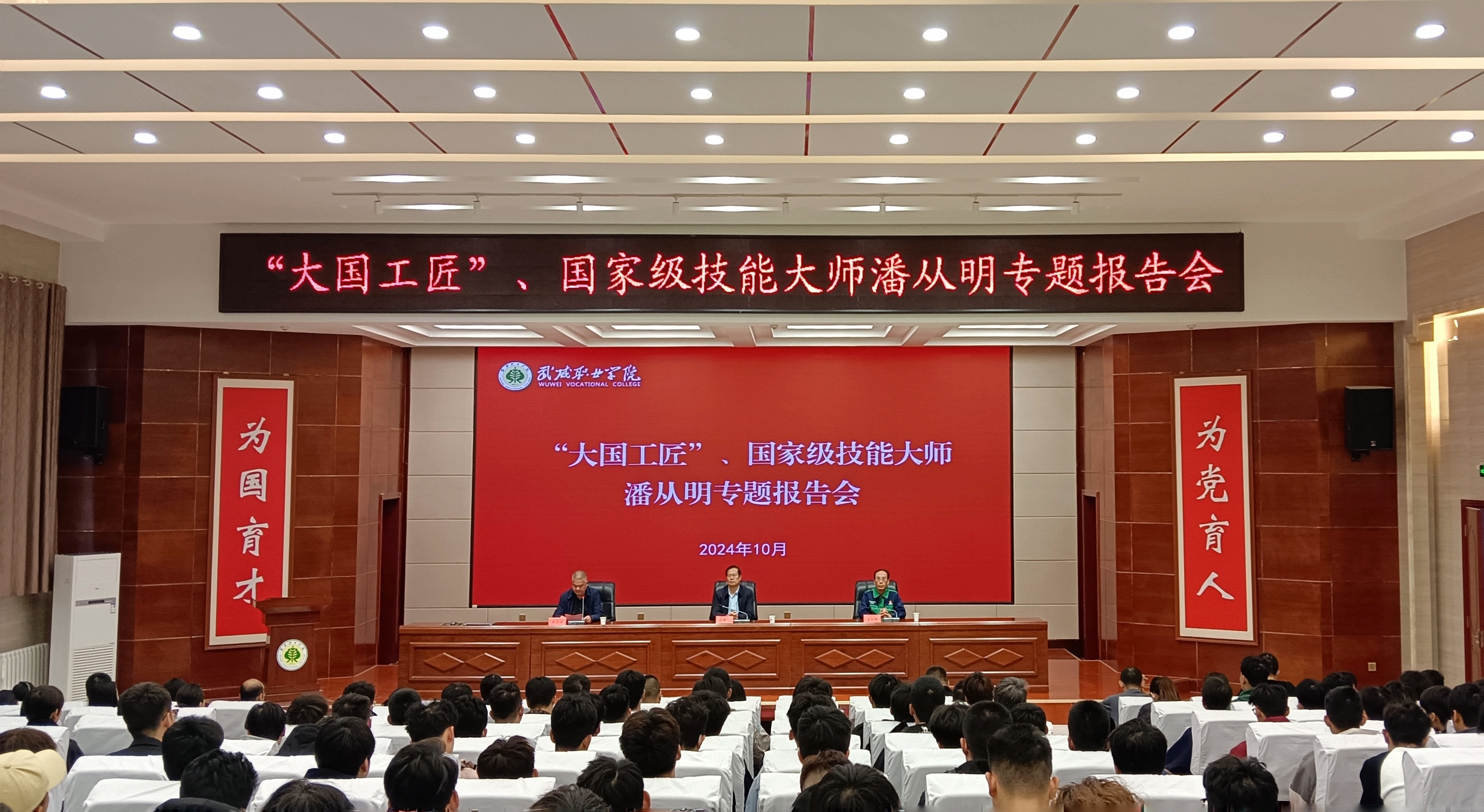 為深入學(xué)習(xí)貫徹落實(shí)習(xí)近平總書記關(guān)于大力弘揚(yáng)勞模精神、勞動(dòng)精神、工匠精神的重要指示精神,充分發(fā)揮廣大勞模以及各行各業(yè)先進(jìn)人物榜樣的引領(lǐng)作用,努力培養(yǎng)更多的大國(guó)工匠、能工巧匠。10月12日,學(xué)校邀請(qǐng)“大國(guó)工匠”全國(guó)勞動(dòng)模范、全國(guó)“五一”勞動(dòng)獎(jiǎng)?wù)芦@得者潘從明大師來(lái)我校作專題報(bào)告。校長(zhǎng)、黨委副書記張開禮出席報(bào)告會(huì),學(xué)校黨委委員、副校長(zhǎng)王守云主持報(bào)告會(huì)。師生代表共計(jì)220余人參加了報(bào)告會(huì)。
