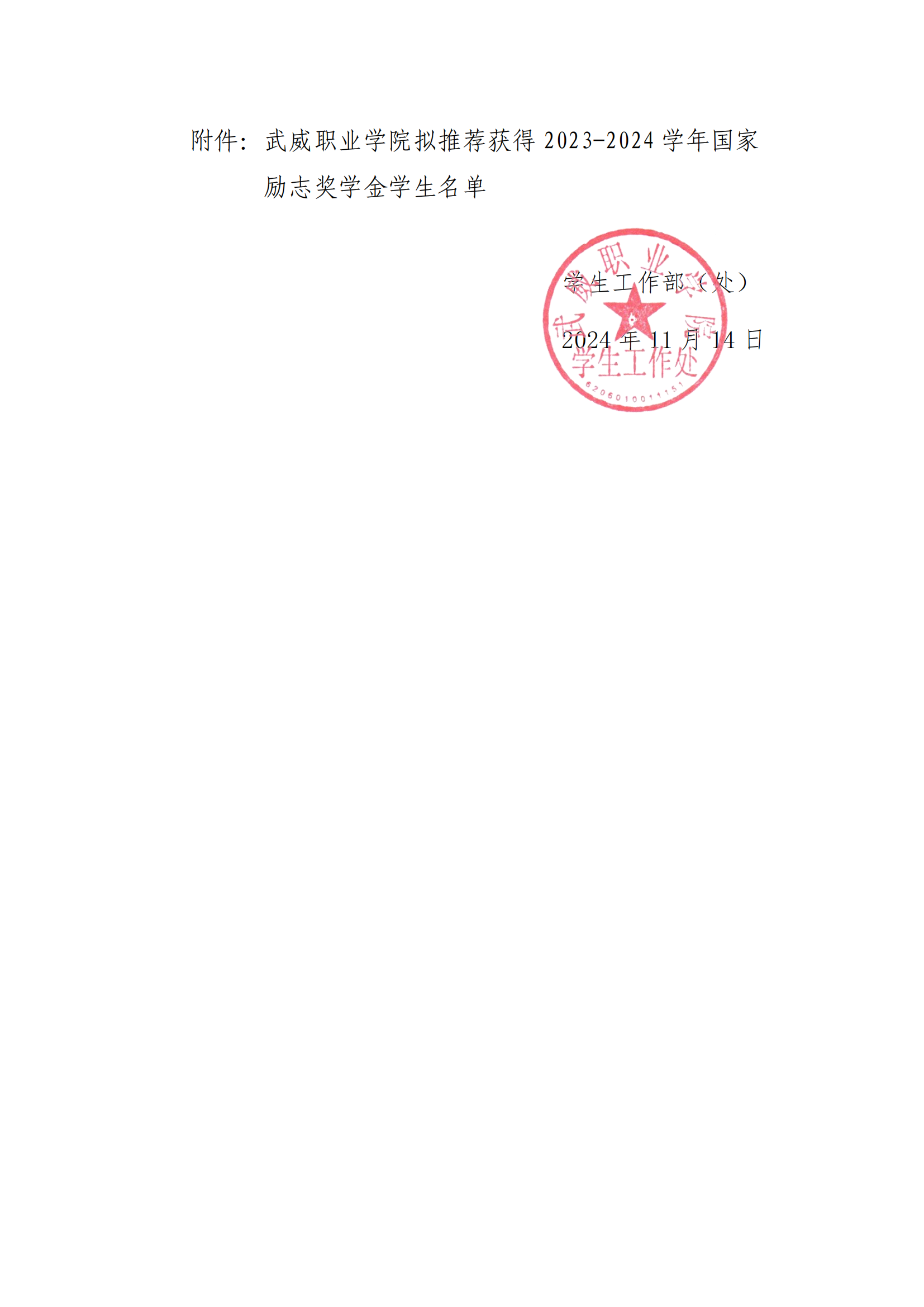 武威職業(yè)學(xué)院關(guān)于2023-2024學(xué)年國(guó)家勵(lì)志獎(jiǎng)學(xué)金候選人的公示