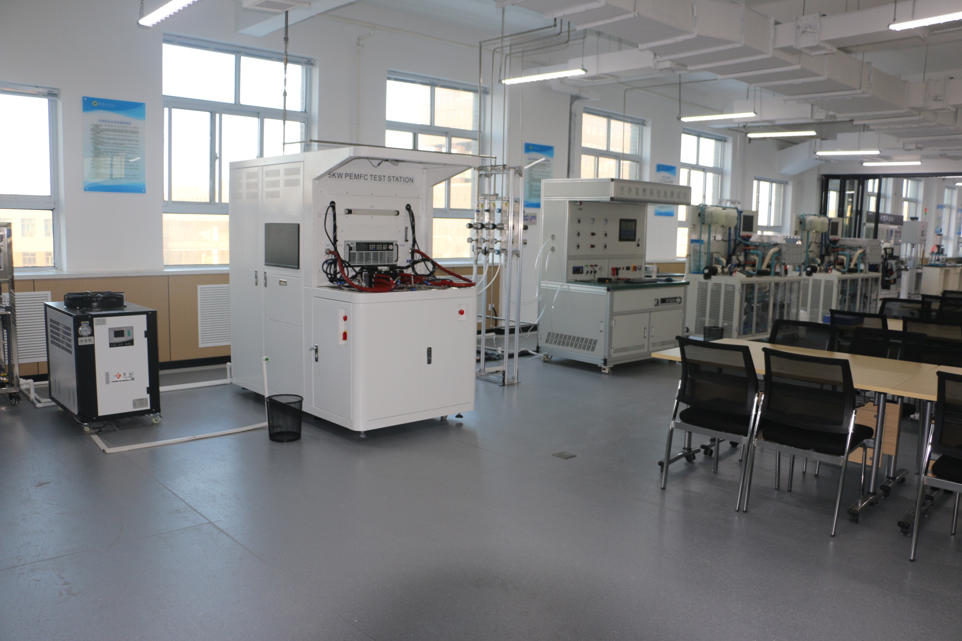 本實訓(xùn)室主要服務(wù)的課程有:燃料電池技術(shù)、氫能裝備檢測與維護(hù)、氫能汽車動力系統(tǒng)運(yùn)行。主要設(shè)備有:裁切機(jī)、噴涂機(jī)、點膠機(jī)、壓機(jī)、恒溫恒濕箱。