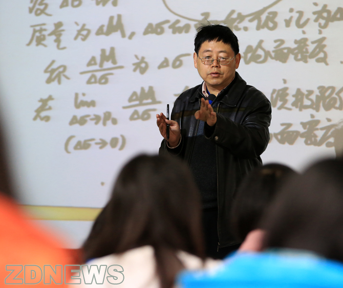 現(xiàn)在,蘇德礦上課用兩個(gè)話筒,一個(gè)掛在脖子上,一個(gè)放在講臺(tái)上,無(wú)論學(xué)生坐在哪個(gè)角落,都能聽得清楚。他還像一個(gè)“舞臺(tái)監(jiān)督”一樣嚴(yán)格布置環(huán)境:教室第一排的窗簾必須拉上,以免大屏幕反光;幻燈片的紙片要用油性筆書寫,這樣投影到屏幕上的效果最清晰。——這樣的布局,就是能為學(xué)生能穩(wěn)定他們的注意力設(shè)計(jì)的,特別是,當(dāng)他們感覺“犯難”時(shí),蘇德礦能適時(shí)拋上一個(gè)“段子”,把學(xué)生分散的注意力拉回來(lái): “當(dāng)你喜歡一個(gè)人,他的一點(diǎn)變化你都看在眼里,別人都變成了常數(shù),TA才是唯一變量。” 這是在講解偏導(dǎo)函數(shù);他還用“存錢存銀行還是存余額寶”來(lái)解釋函數(shù)里的重要極限概念。在講一元復(fù)合函數(shù)求導(dǎo)的時(shí)候,他用來(lái)解釋的例子是:“就像最近來(lái)天氣突然熱起來(lái),你要脫衣服。脫到怎樣合適呢?一件一件脫,到不熱了為止。復(fù)合函數(shù)也一樣,一層一層求導(dǎo),直到內(nèi)函數(shù)的導(dǎo)數(shù)有公式,就成了。”又比如,說(shuō)“開車為什么會(huì)撞樹?因?yàn)槌髽涞姆较颍僖粋€(gè),就是車速太快。”蘇德礦先賣個(gè)了關(guān)子,接著把方向?qū)?shù)亮出來(lái),“在P點(diǎn)沿L方向的函數(shù)值的變化率,跟撞樹一樣,一個(gè)是方向,一個(gè)是速度。”