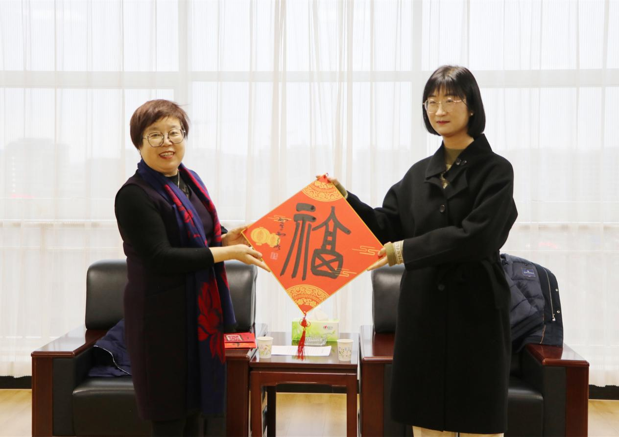 王宏對劉光美一行的到來表示歡迎,并詳細(xì)介紹了學(xué)校的辦學(xué)理念,辦學(xué)特色成果,教育改革創(chuàng)新和統(tǒng)戰(zhàn)工作情況等方面內(nèi)容。劉光美對學(xué)校一直以來支持民建組織各項(xiàng)工作表示感謝,并代表民建市委向張葦莉贈送春聯(lián)并致以親切的問候和節(jié)日的祝福,同時勉勵其始終牢記教育初心,爭做師德高尚、潛心育人的好老師。