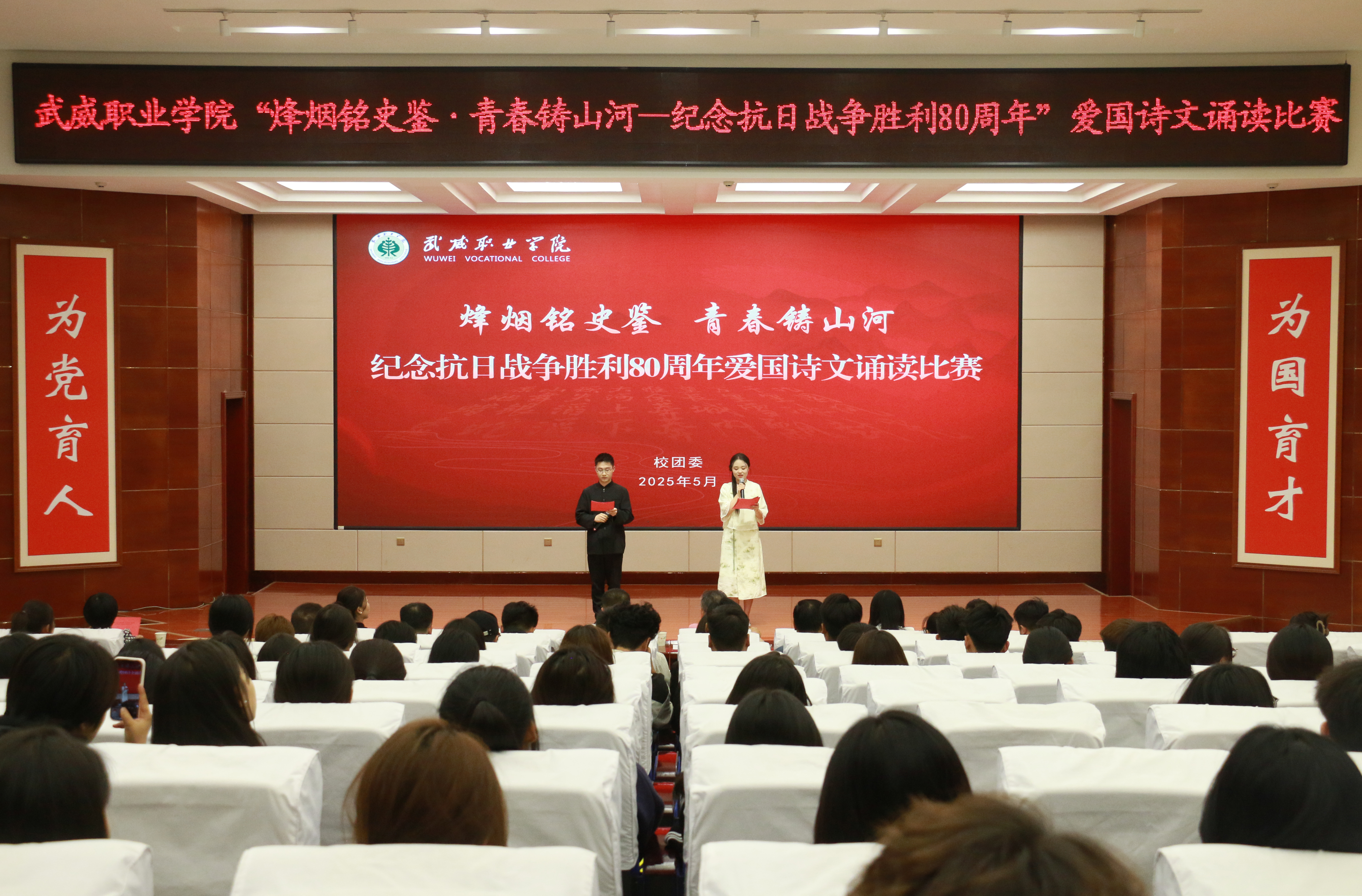 詩韻傳薪火,青春頌山河。5月22日晚,學(xué)?!胺闊熴懯疯b青春鑄山河—紀(jì)念中國人民抗日戰(zhàn)爭(zhēng)勝利80周年”愛國詩文誦讀比賽在菁英廳舉行。學(xué)校黨委委員、副校長何毅出席活動(dòng)。二級(jí)學(xué)院團(tuán)委書記及學(xué)生代表200余人觀看比賽。
