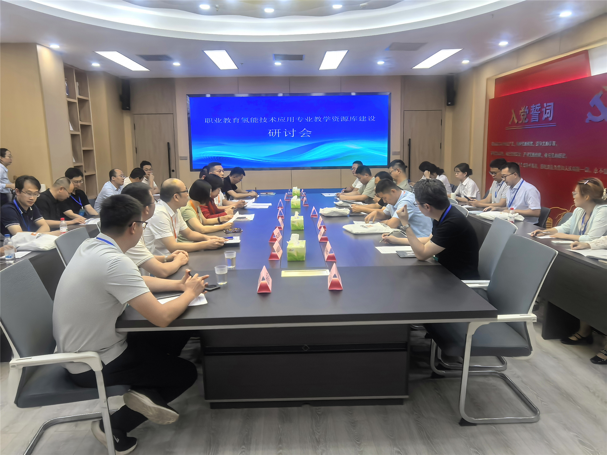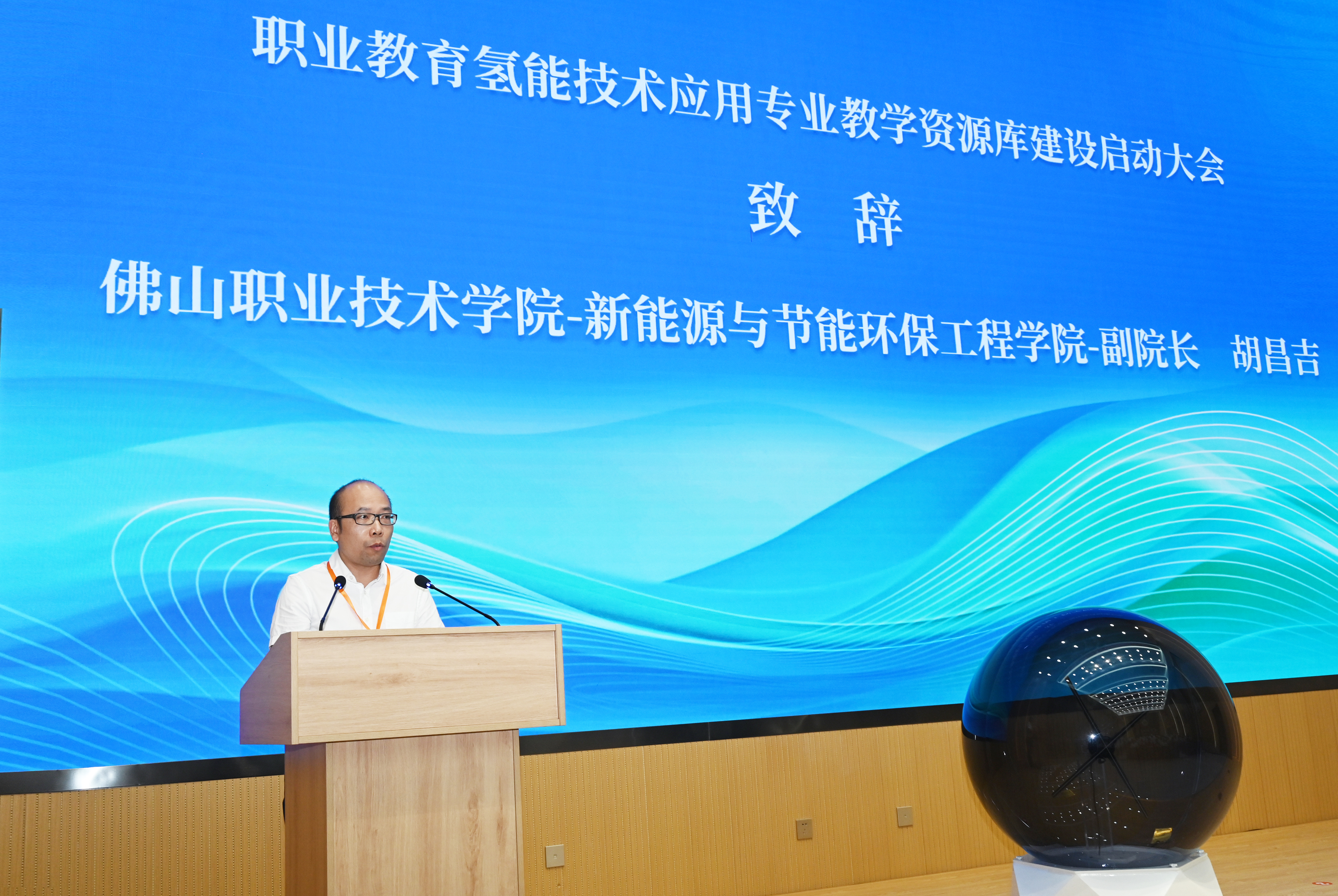 在參會領(lǐng)導(dǎo)和嘉賓的共同見證下,舉行了職業(yè)教育氫能技術(shù)應(yīng)用專業(yè)教學(xué)資源庫建設(shè)啟動儀式。隨著啟動球的點(diǎn)亮,標(biāo)志著資源庫建設(shè)正式啟動。