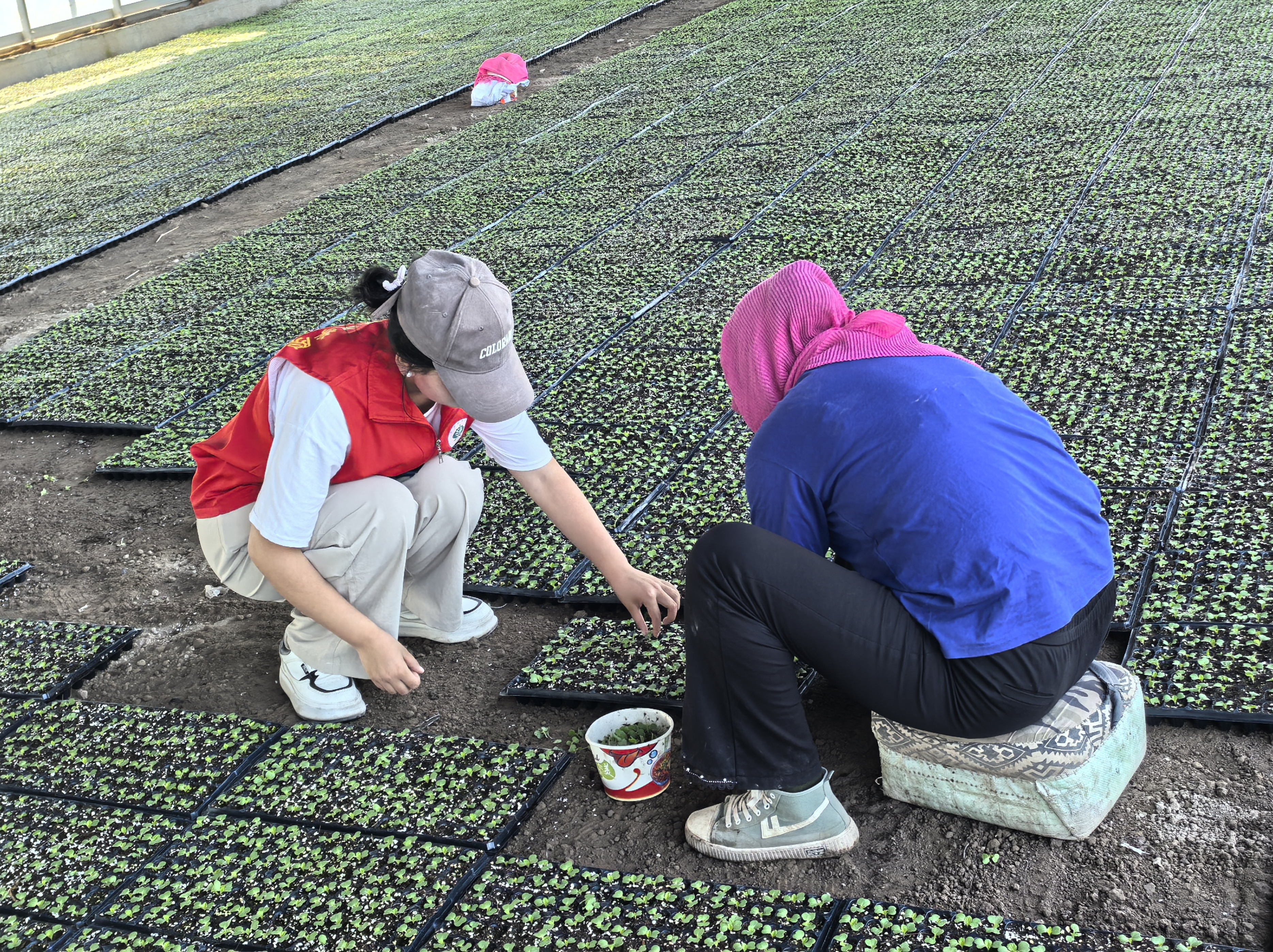 在涼州區(qū)雙城鎮(zhèn)徐信村,服務(wù)隊(duì)同步開展農(nóng)業(yè)技術(shù)指導(dǎo)與健康環(huán)境調(diào)研。志愿者們深入田間地頭,實(shí)地操練娃娃菜集約化育苗、間苗及生物防治技術(shù),深度剖析農(nóng)藥使用痛點(diǎn)。同時(shí),走訪農(nóng)戶調(diào)研居住環(huán)境,分析露天垃圾與腸道傳染病的關(guān)聯(lián),提出環(huán)境健康綜合治理意見?!稗r(nóng)田+健康”雙線實(shí)踐模式,既提升了農(nóng)業(yè)生產(chǎn)安全性,又強(qiáng)化了健康環(huán)境干預(yù),生動(dòng)詮釋了“以農(nóng)促健、以健護(hù)農(nóng)”的深層聯(lián)動(dòng)機(jī)制。