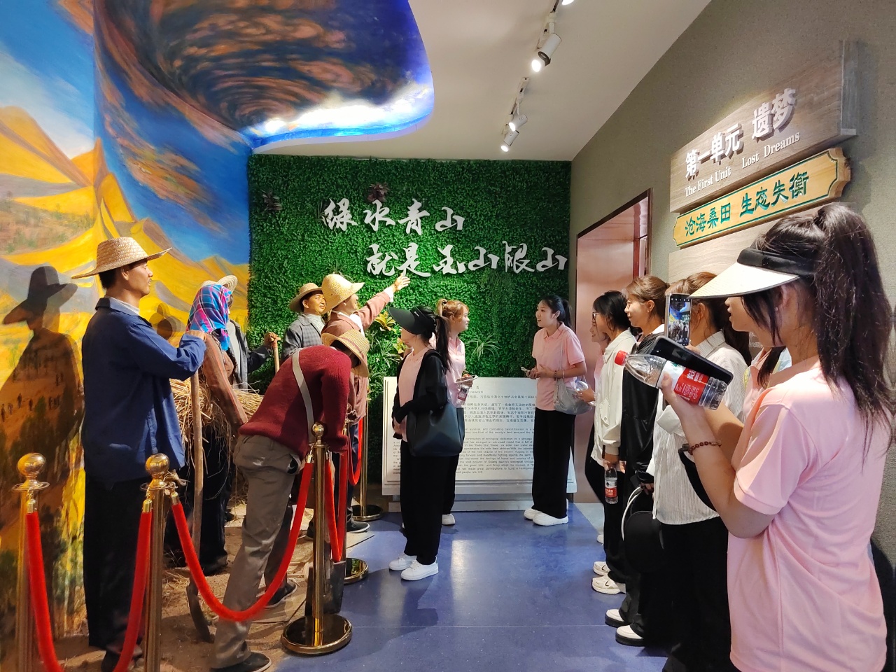 活動中,教師黨員們沿著“六老漢”治沙足跡,參觀了八步沙治沙紀念館。一張張泛黃的老照片、一件件磨損的勞動工具、一段段感人的治沙故事,生動再現(xiàn)了上世紀80年代以來,以郭朝明、賀發(fā)林等為代表的“六老漢”,面對“狂風(fēng)卷黃沙,荒灘無人家”的惡劣環(huán)境,立下“一棵也不能少”的誓言,用雙手在沙漠邊緣筑起綠色屏障的壯舉。三代人接力治沙,從“一棵樹”到“一片林”,從“沙進人退”到“綠進沙退”,用堅守與奉獻詮釋了“艱苦奮斗、無私奉獻、鍥而不舍、久久為功”的八步沙精神。