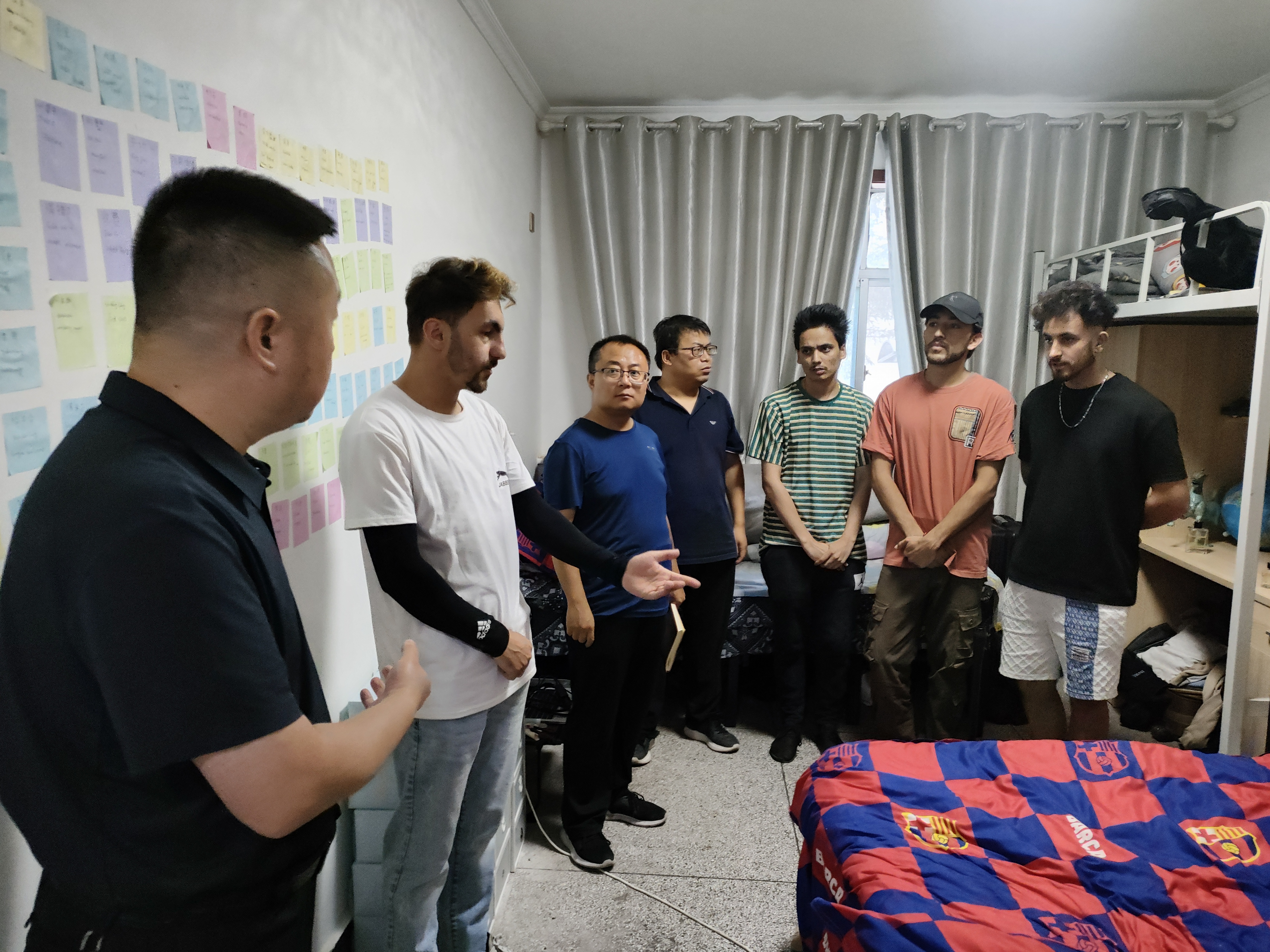 在新學(xué)期開學(xué)之際,國際合作交流處負(fù)責(zé)人帶領(lǐng)部門全體教師深入留學(xué)生宿舍,開展安全衛(wèi)生專項檢查,實地了解留學(xué)生開學(xué)準(zhǔn)備情況。