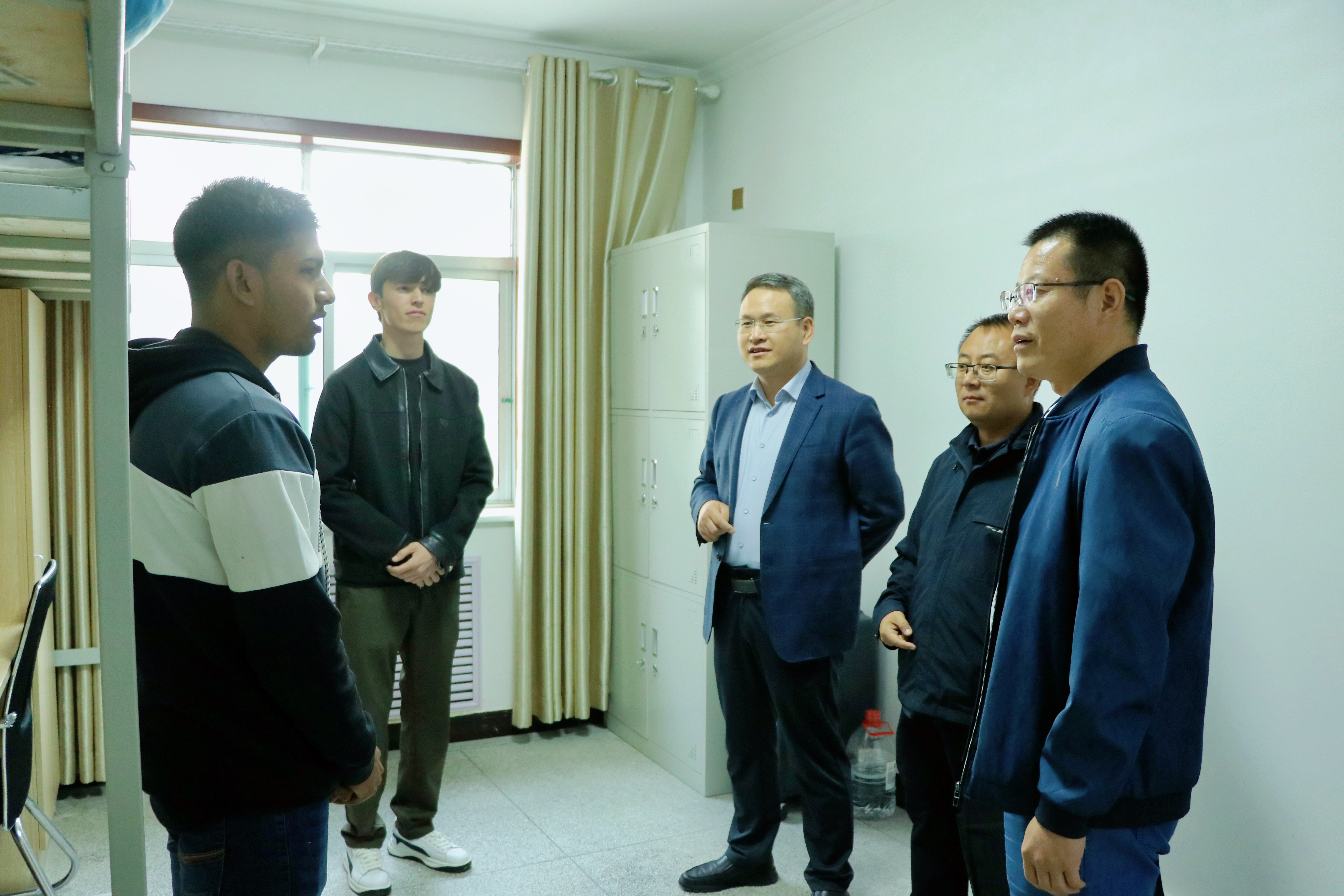 帶著學校對國際學生的深切關(guān)懷,伍國強一行逐一走訪了國際學生宿舍,查看、了解國際學生住宿、生活與學習情況,并代表學校對2025級新錄取國際學生表示歡迎,希望同學們珍惜來華學習的寶貴機會,增強與老師的溝通交流,學好專業(yè)理論知識,增強技術(shù)技能本領(lǐng),同時積極學習中華優(yōu)秀傳統(tǒng)文化,做好中外文化交流的使者。交流過程中,伍國強要求國際合作交流處提高管理能力,強化安全教育,增強服務意識,為國際學生營造一個安全舒適溫馨的居住環(huán)境,確保國際學生學習生活安全穩(wěn)定。