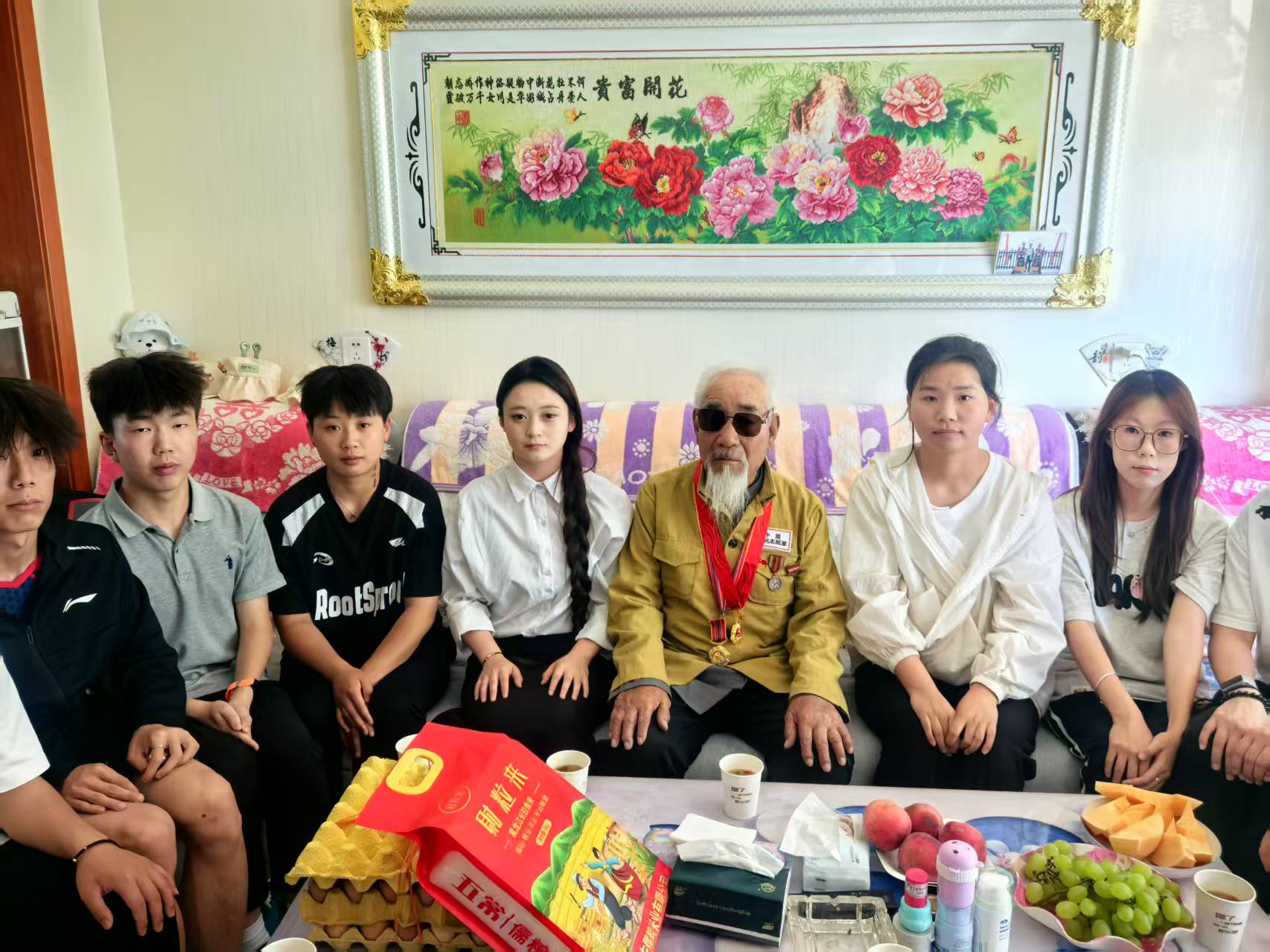 現(xiàn)居住于康寧新村八組、已93歲高齡的張克錄爺爺是參加過抗美援朝的退役老英雄。9月25日,堅持駐村4年的靳東生老師與學?!八{天愛心協(xié)會”指導教師、青年大學生,帶著學校的牽掛、問候與崇敬,一起到張克錄爺爺家中,為老人送上關(guān)愛祝福,開展了一場“聆聽英雄故事、傳承紅色基因”的特別走訪、慰問活動。張克錄爺爺精神矍鑠,身著掛有勛章的志愿軍軍裝,向師生們講述當年志愿軍戰(zhàn)士冒著凜冽寒風跨過鴨綠江,爬冰臥雪英勇戰(zhàn)斗的生動事跡;驚心動魄的戰(zhàn)斗故事,在老人樸實無華的語言中顯得格外感人,在場師生仿佛穿越時空,親眼目睹了志愿軍戰(zhàn)士們用血肉之軀筑起的鋼鐵長城;說到動情處,老人和師生們的眼眶已經(jīng)濕潤,師生心靈受到了深刻洗禮、愛國情懷得到了高度升華。