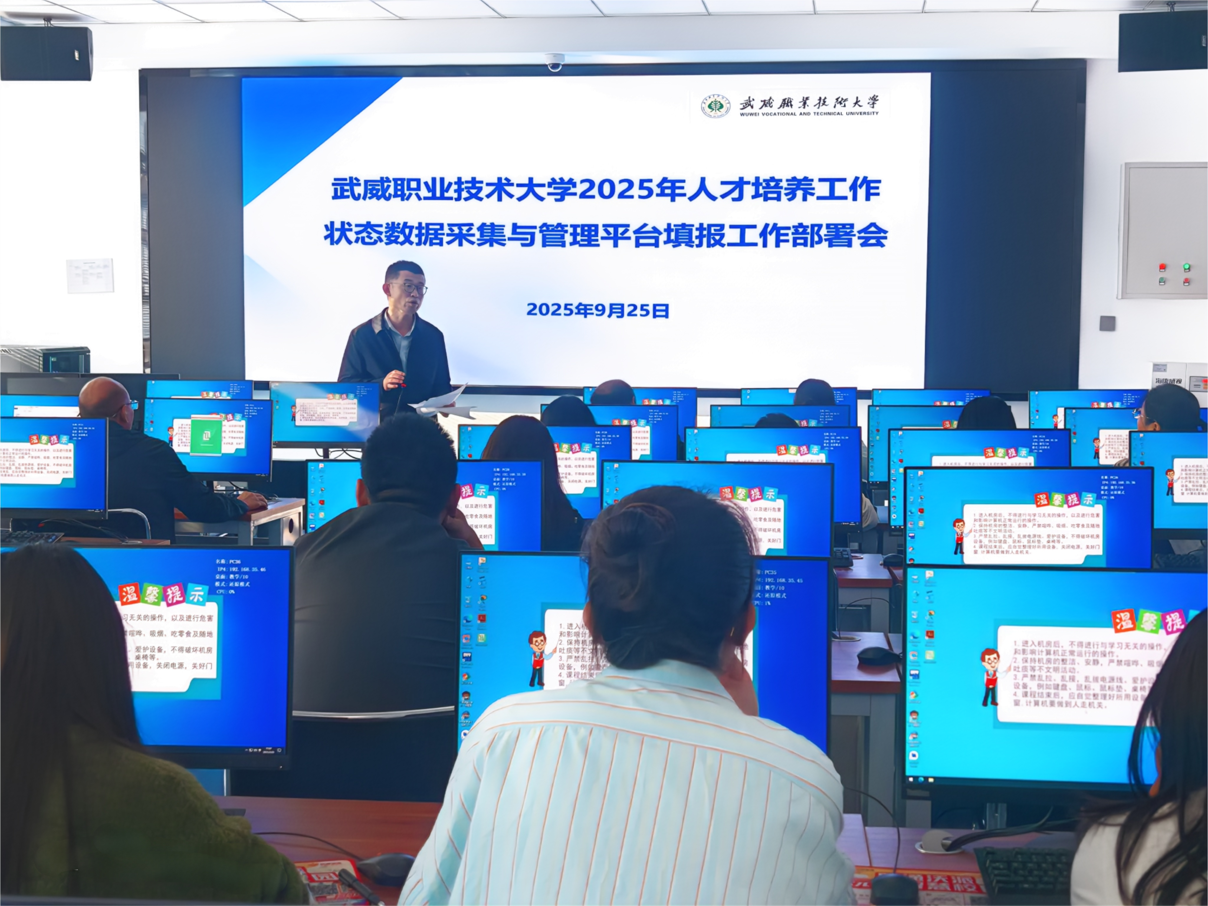 為深入貫徹落實教育部職成司《關(guān)于做好職業(yè)教育2024-2025學(xué)年數(shù)據(jù)采集工作的通知》精神,根據(jù)《甘肅省教育廳關(guān)于開展全省職業(yè)教育2024—2025學(xué)年信息數(shù)據(jù)采集工作的通知》要求,確保學(xué)校2025年人才培養(yǎng)工作狀態(tài)數(shù)據(jù)采集工作高效、有序開展。9月25日,教務(wù)處在篤行樓3樓機(jī)房組織召開學(xué)校2025年人才培養(yǎng)工作狀態(tài)數(shù)據(jù)采集工作部署會議。教務(wù)處、各學(xué)院(部)數(shù)據(jù)填報相關(guān)工作人員參加會議。