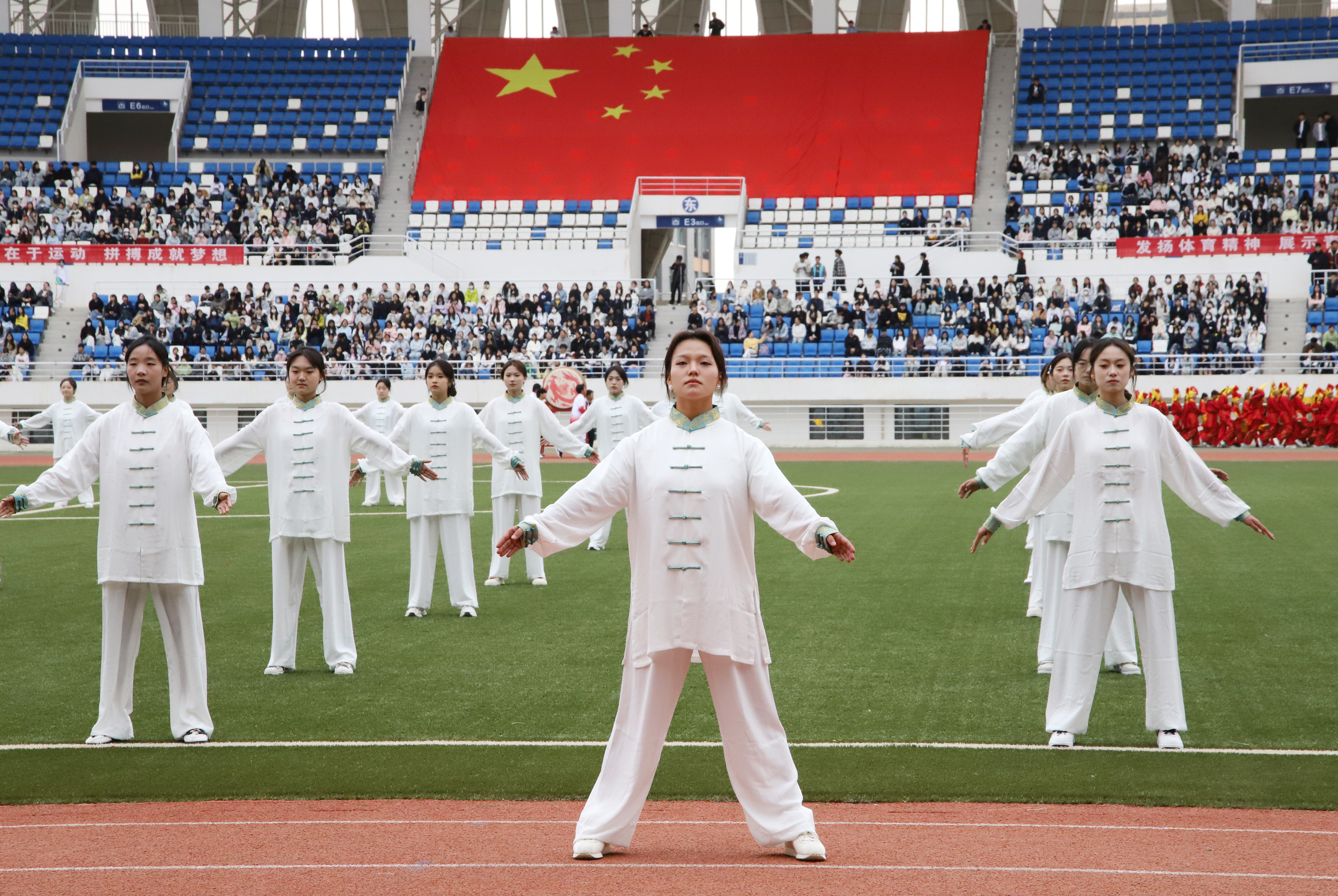 體育教學(xué)成果展示將開(kāi)幕式氣氛推向高潮。國(guó)家級(jí)非物質(zhì)文化遺產(chǎn)涼州攻鼓子,鼓聲鏗鏘有力,動(dòng)作整齊劃一,將傳統(tǒng)文化的厚重與激情展現(xiàn)得淋漓盡致;八段錦表演動(dòng)作舒展柔和,一招一式如行云流水,盡顯中華傳統(tǒng)養(yǎng)生文化的優(yōu)雅與寧?kù)o;韻律操步伐輕盈、動(dòng)作有力,展現(xiàn)了武職大學(xué)子陽(yáng)光向上、朝氣蓬勃的精神面貌。最后,藝術(shù)與教育學(xué)院老師們獻(xiàn)上男女四重唱《美麗中國(guó)》,悠揚(yáng)歌聲里滿(mǎn)含對(duì)祖國(guó)的贊美,引發(fā)全場(chǎng)共鳴。