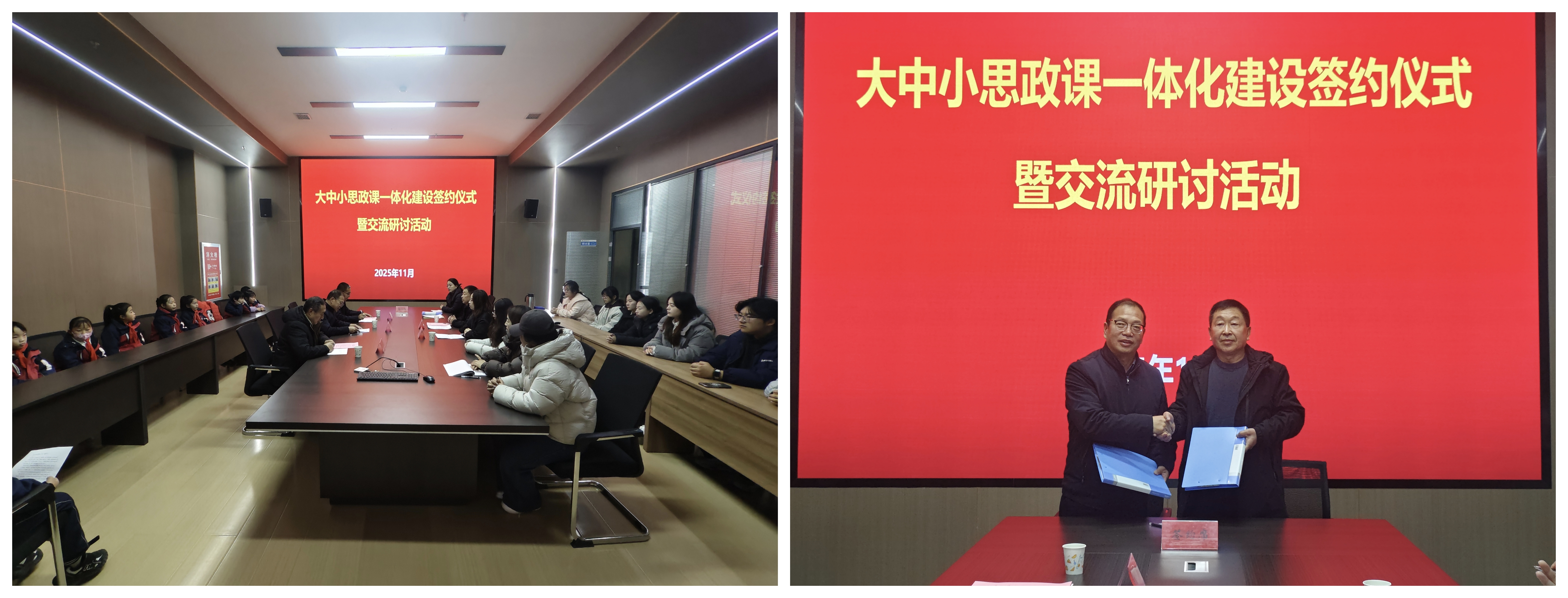 簽約儀式上,劉心和徐主年分別致辭,雙方共同簽署了《大中小學(xué)思政課一體化共建協(xié)議書》,并圍繞共建目標(biāo)、合作內(nèi)容與實施機制進行了深入交流。此次合作簽約為院校雙方搭建了資源共享、優(yōu)勢互補、協(xié)同育人的平臺,希望雙方在師資隊伍共建、實踐資源共享、課程創(chuàng)新突破等方面多維度協(xié)同推進,不斷探索一體化建設(shè)的長效機制,打破各學(xué)段在課程、資源、師資等方面的壁壘,實現(xiàn)有機銜接,促進優(yōu)質(zhì)教學(xué)經(jīng)驗互鑒、特色教學(xué)模式推廣,共同提升立德樹人效果。