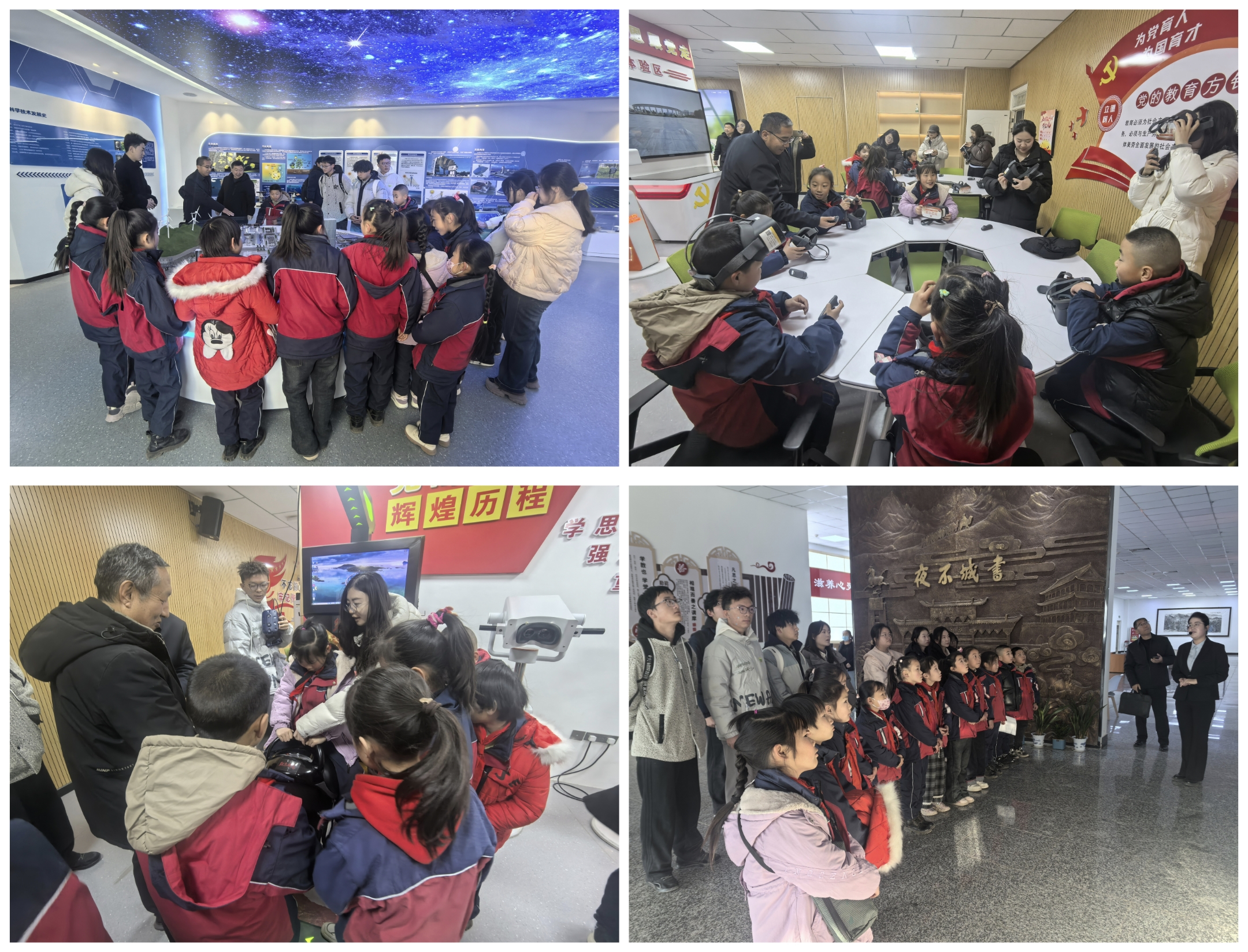 共建簽約儀式后,學(xué)生們參觀了學(xué)校圖書館、新能源科技館、課程思政教學(xué)研究示范中心等場館。孩子們穿梭于書香四溢的閱覽區(qū),駐足于各種先進的模型與互動裝置前,直觀感受VR技術(shù)賦能思政課堂的創(chuàng)新魅力,眼神中充滿了對知識的渴望與探索,這次參觀不僅是一次校園環(huán)境體驗,更是一次深刻的“潤物細(xì)無聲”思政教育,在孩子們心中播下了求知與創(chuàng)新的種子。