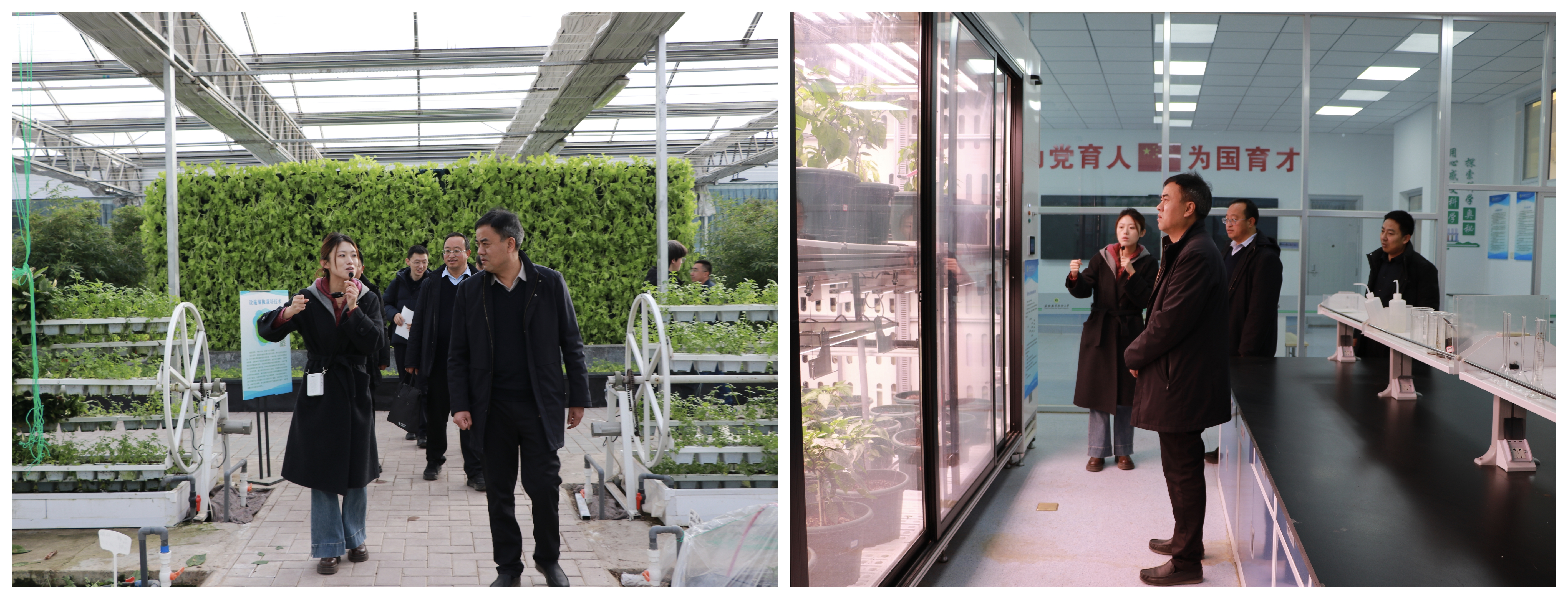 調(diào)研期間,莊浪職業(yè)教育中心一行四人先后參觀了農(nóng)產(chǎn)品質(zhì)量安全與檢測實訓室、智慧設(shè)施農(nóng)業(yè)實訓室、現(xiàn)代農(nóng)業(yè)生產(chǎn)性實訓基地等多個實驗實訓場所。學院專業(yè)教師詳細介紹了各實訓室的建設(shè)標準、設(shè)備配置、教學功能及實訓課程開展情況,展示了學院在教育教學方面取得的成果。在現(xiàn)代農(nóng)業(yè)生產(chǎn)性實訓基地,雙方圍繞中高職貫通培養(yǎng)、實驗實訓室建設(shè)等內(nèi)容深入交流,申賓德介紹了學院專業(yè)特色、課程體系、師資隊伍及學生升學就業(yè)等方面的內(nèi)容。王瑾楠結(jié)合本校專業(yè)辦學實際,交流了在貫通培養(yǎng)過程中遇到的課程銜接、人才培養(yǎng)標準等問題。
