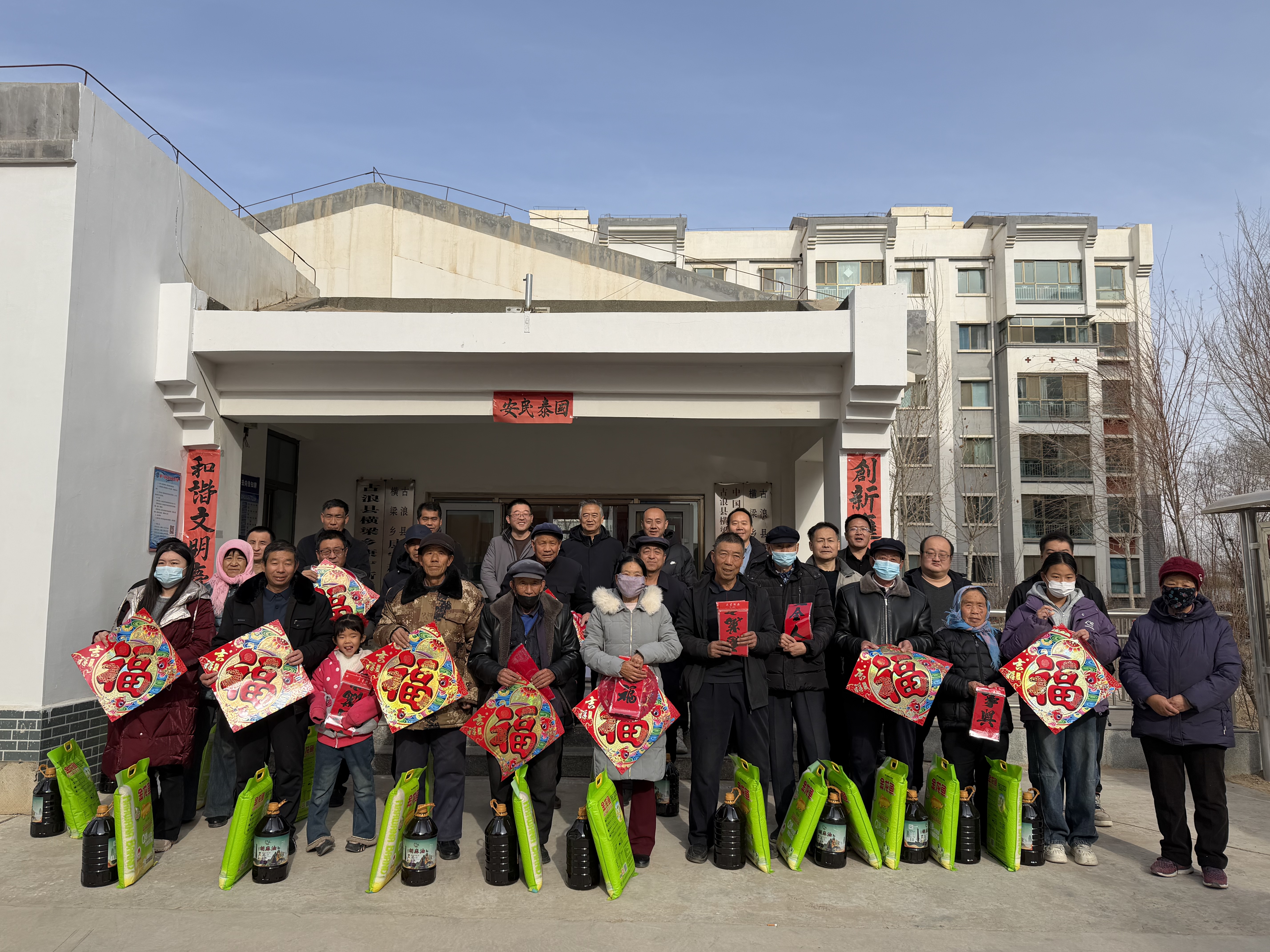 1月19日,學(xué)校在幫扶點(diǎn)古浪縣橫梁鄉(xiāng)康寧新村、幸福新村開展春節(jié)前走訪慰問和送溫暖、送春聯(lián)、送祝福活動。為困難群眾、結(jié)對幫扶戶、駐村工作隊(duì)送上春聯(lián)、福字、窗花、大米、胡麻油等慰問品,并聯(lián)合開展文化共建座談活動,將學(xué)校的關(guān)心關(guān)愛傳遞到了基層群眾心里,進(jìn)一步豐富了群眾精神文化生活,營造了祥和、喜慶的節(jié)日氛圍。