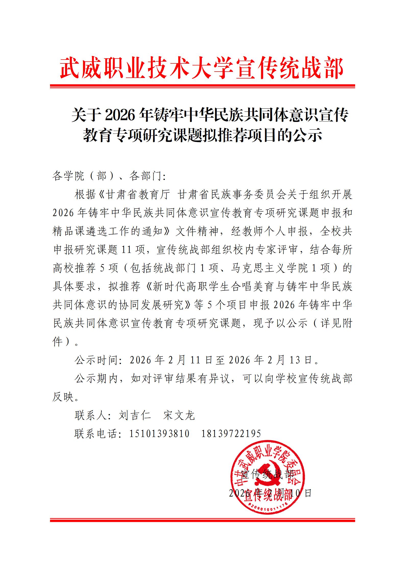 關(guān)于2026年鑄牢中華民族共同體意識宣傳教育專項研究課題擬推薦項目的公示