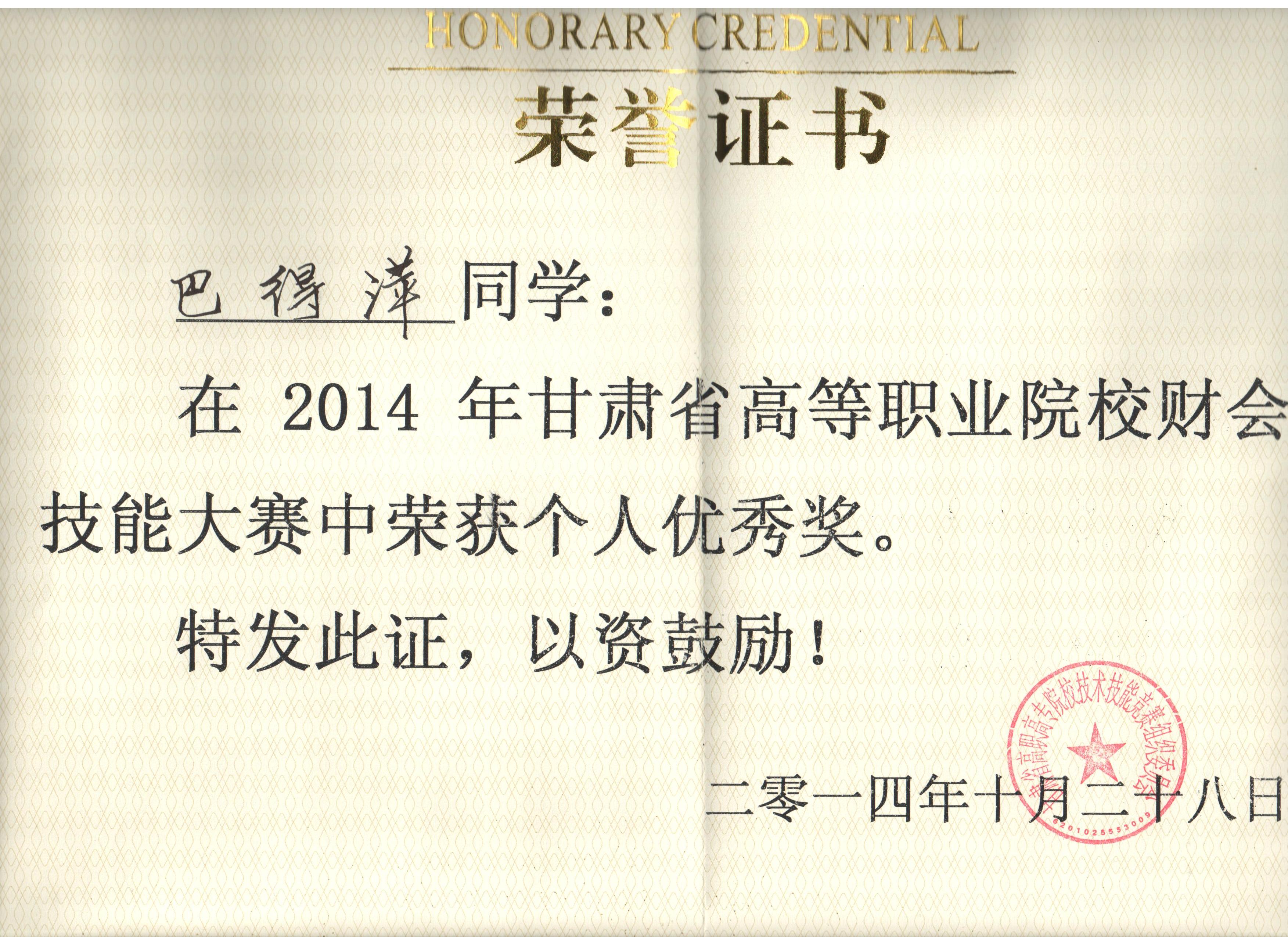 經(jīng)濟(jì)管理系李惠蘭、賀德赟老師指導(dǎo)我系會(huì)計(jì)專(zhuān)業(yè)學(xué)生參加2014年甘肅省高等職業(yè)學(xué)院財(cái)會(huì)技能大賽,榮獲優(yōu)秀獎(jiǎng)。