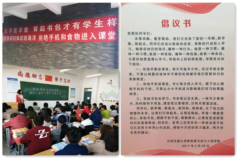 新學(xué)期伊始,新能源學(xué)院要求所有班主任及輔導(dǎo)員老師除了做好學(xué)生課堂管理工作、宿舍安全衛(wèi)生工作、密切關(guān)注“三困生”等常規(guī)工作之外,重點部署了安全預(yù)警教育和“三要求一倡導(dǎo)”教育活動,即要求學(xué)生上課必須關(guān)閉手機、不得將食品帶入課堂、不準(zhǔn)在公共場所吸煙,倡導(dǎo)學(xué)生背書包。