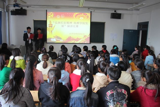 10月25日、26日組織學生觀看大型紀錄片《長征》,通過了解紅軍長征勝利的歷史故事,體會紅軍長征精神,抒發(fā)對革命先烈的敬仰之情,在感人的故事中回顧革命歷史,感恩幸福生活。10月31日晚,在博學樓612舉行了以“弘揚長征精神、助推學院發(fā)展”為主題的演講比賽。通過不同形式的活動,號召同學們弘揚長征精神,從小做起,從一點一滴做起,為中華民族的復興而努力學習,讓紅軍精神在莘莘學子中傳承。