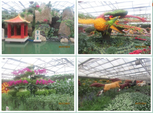 蔬菜園藝廳為優(yōu)秀蔬菜景觀的集中營(yíng),五顏六色的種子、蔬菜、花卉及其他普通材料,在園藝師的手中演繹成氣勢(shì)恢弘、雄偉壯觀、形神兼?zhèn)?、意趣天成的藝術(shù)精品。其中主景點(diǎn)美麗中國(guó)將大明湖牌坊、蓬萊閣、五岳獨(dú)尊、孔子雕像、象鼻山、黃果樹瀑布、云岡石窟、嘉峪關(guān)、長(zhǎng)白山瀑 ……30余個(gè)國(guó)內(nèi)知名人文及自然景點(diǎn)穿插其中。整個(gè)景點(diǎn)從遠(yuǎn)處看去,把祖國(guó)的大好河山、現(xiàn)代科技和鮮活蔬菜有機(jī)融為一體,凸顯著綠色·科技·未來的主題。