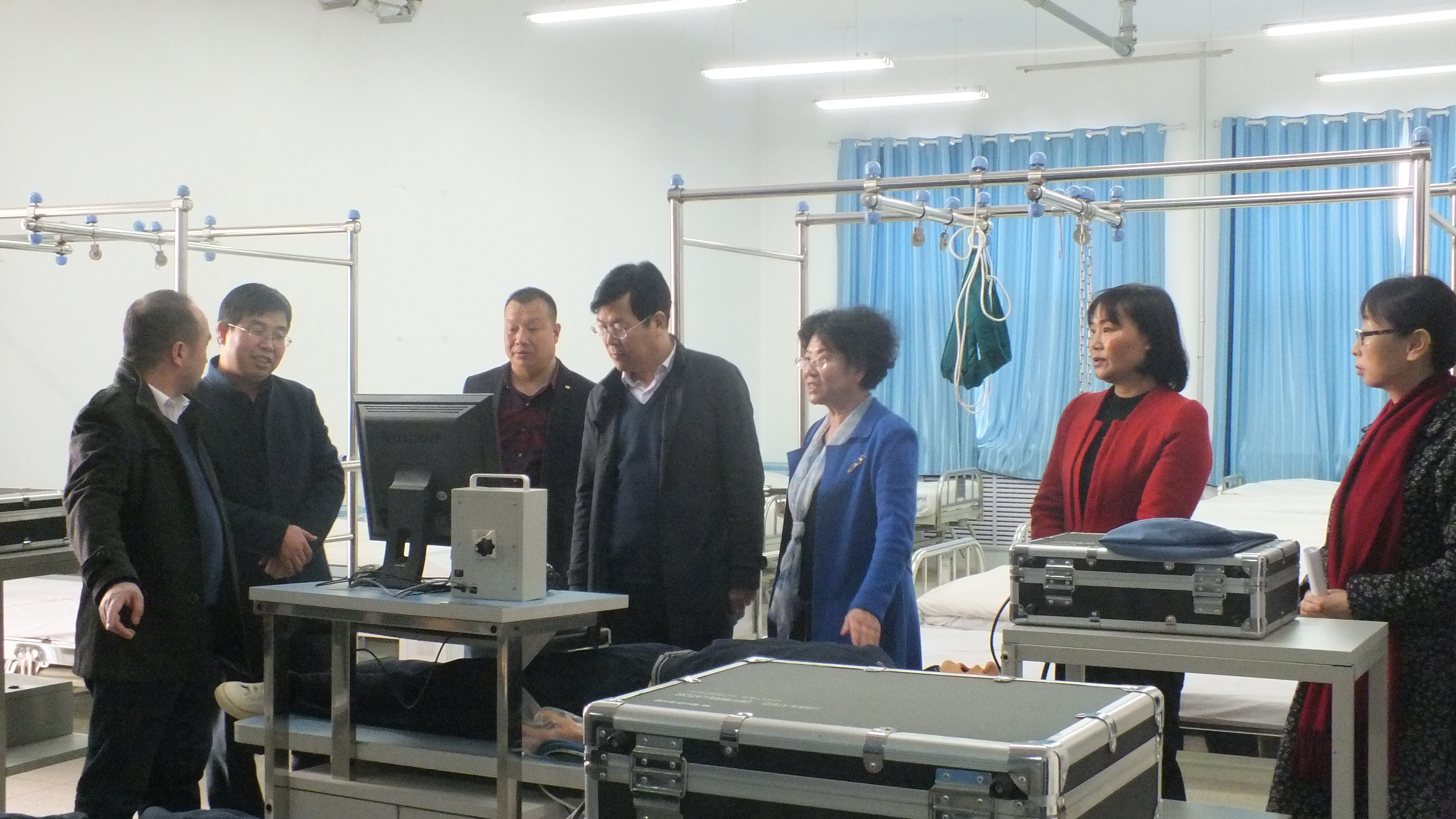 毛校長一行參觀了護(hù)理系的生命科技館、機(jī)能實(shí)訓(xùn)室、基護(hù)實(shí)訓(xùn)室、內(nèi)外科實(shí)訓(xùn)室等醫(yī)學(xué)類實(shí)訓(xùn)室,詳細(xì)了解了實(shí)驗(yàn)設(shè)備的運(yùn)行情況和實(shí)驗(yàn)實(shí)訓(xùn)課程的教學(xué)管理模式。潘玉華向來賓們介紹了學(xué)院申辦臨床醫(yī)學(xué)專業(yè)的進(jìn)展,以及我院實(shí)訓(xùn)課程建設(shè)和籌建實(shí)驗(yàn)實(shí)訓(xùn)室取得的成果。