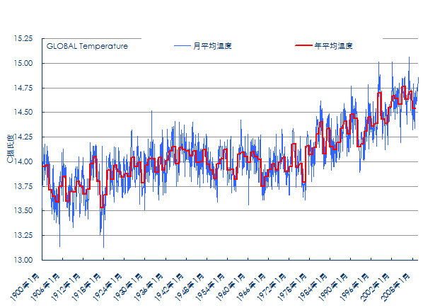 1900-2008年間全球的溫度變化