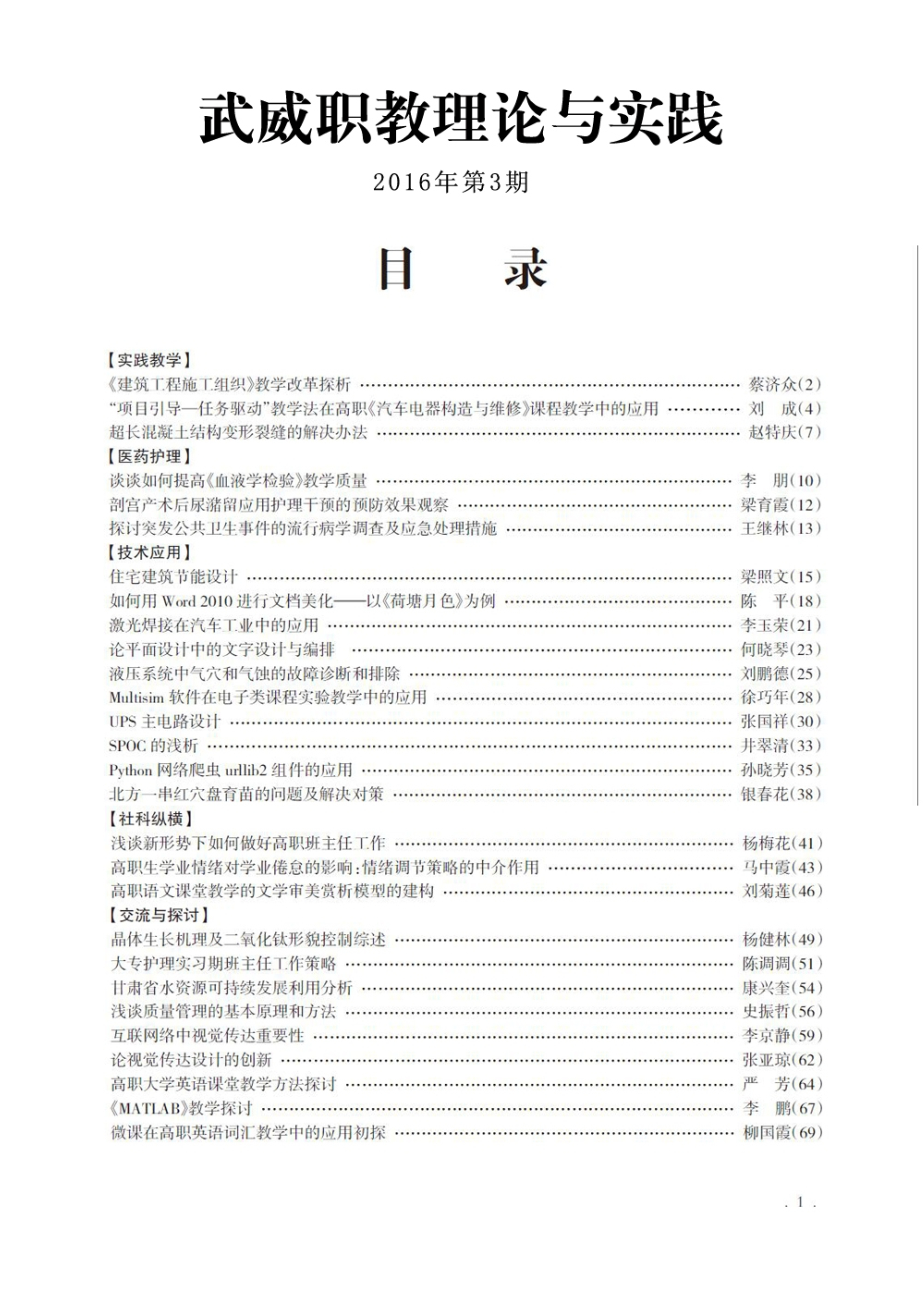 2016年第3期《武威職教理論與實踐》